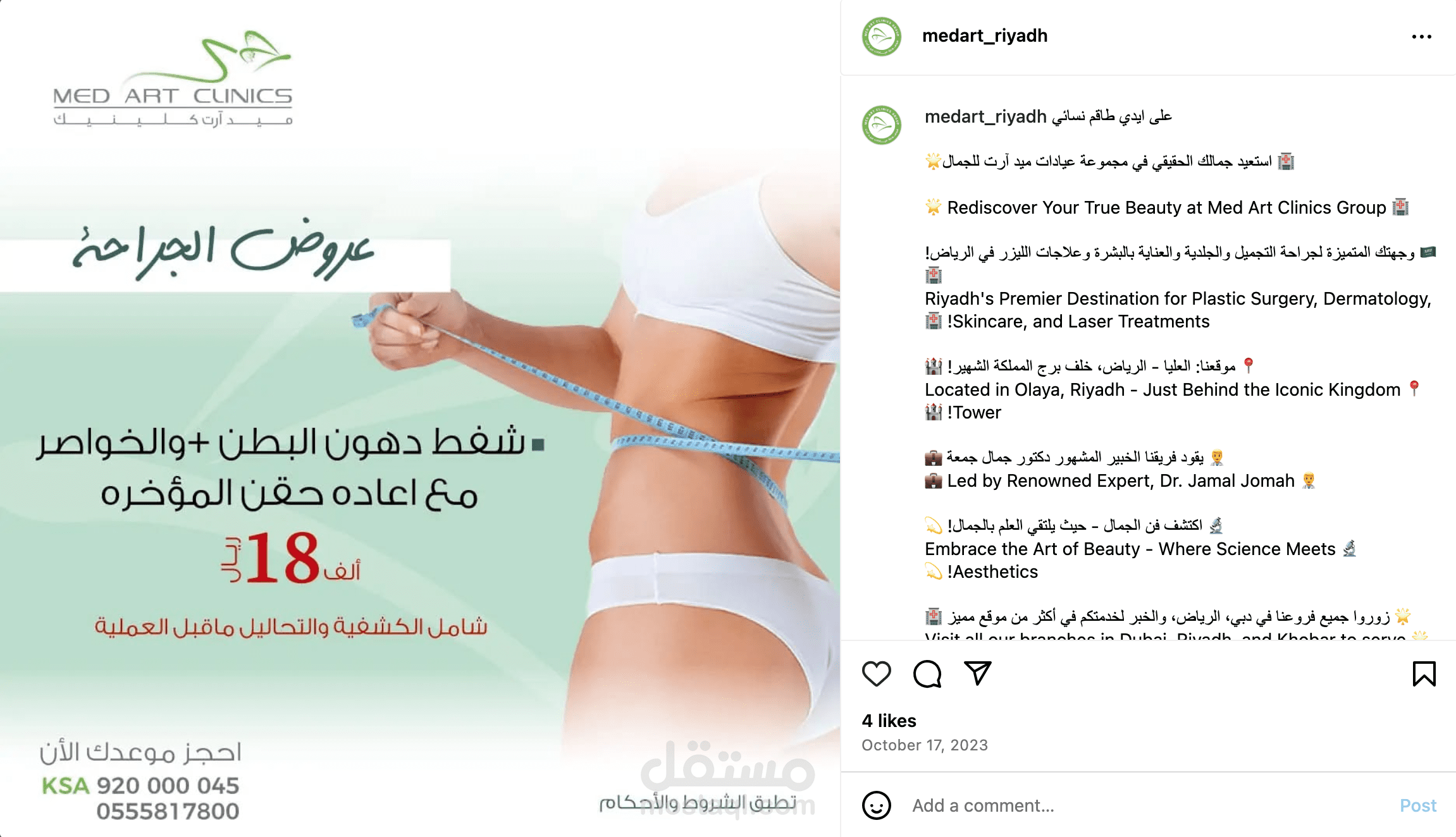 في هذا المشروع قمت بإدارة وتطوير حساب إنستغرام لمركز Med Art Clinics بالرياض الذي يقدم خدمات طبية متخصصة في التجميل والعناية بالبشرة الهدف كان تعزيز التفاعل مع المتابعين وزيادة الوعي بالخدمات المقدمة.