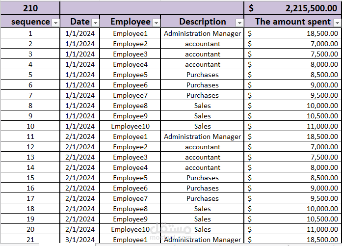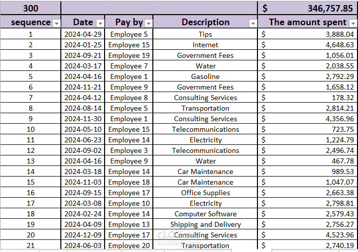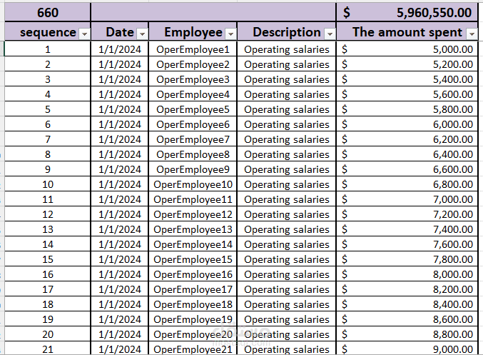 Expense Tracking Sheet: A structured log of all administrative and operational expenses, categorized by employee and type of spending.