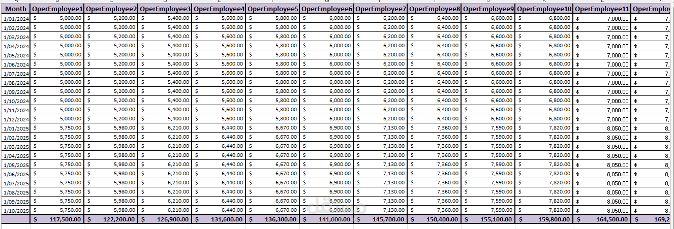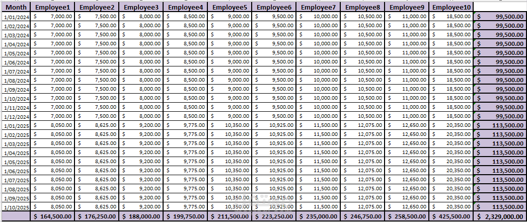 Clean, Professional Design: Consistent formatting, color coding, and currency alignment for easy data interpretation.