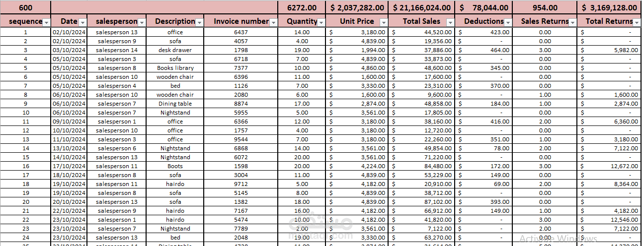 Analytic Sales Dashboard: Tracks total sales, deductions, and sales returns to measure profitability trends.