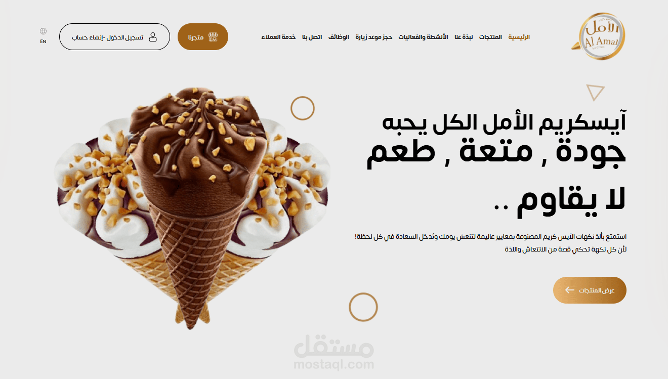 Built an e-commerce platform for an ice cream company, enabling product browsing, cart management, checkout, job applications, and customer support through suggestions and complaints features.