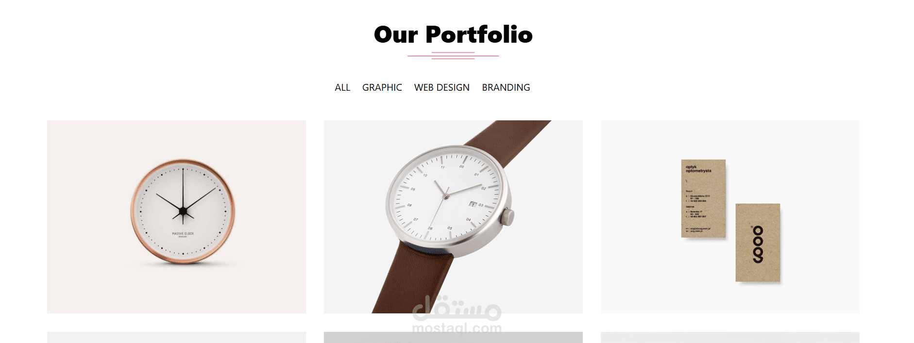 Portfolio: Displays completed projects or past work with images, links, and short details.