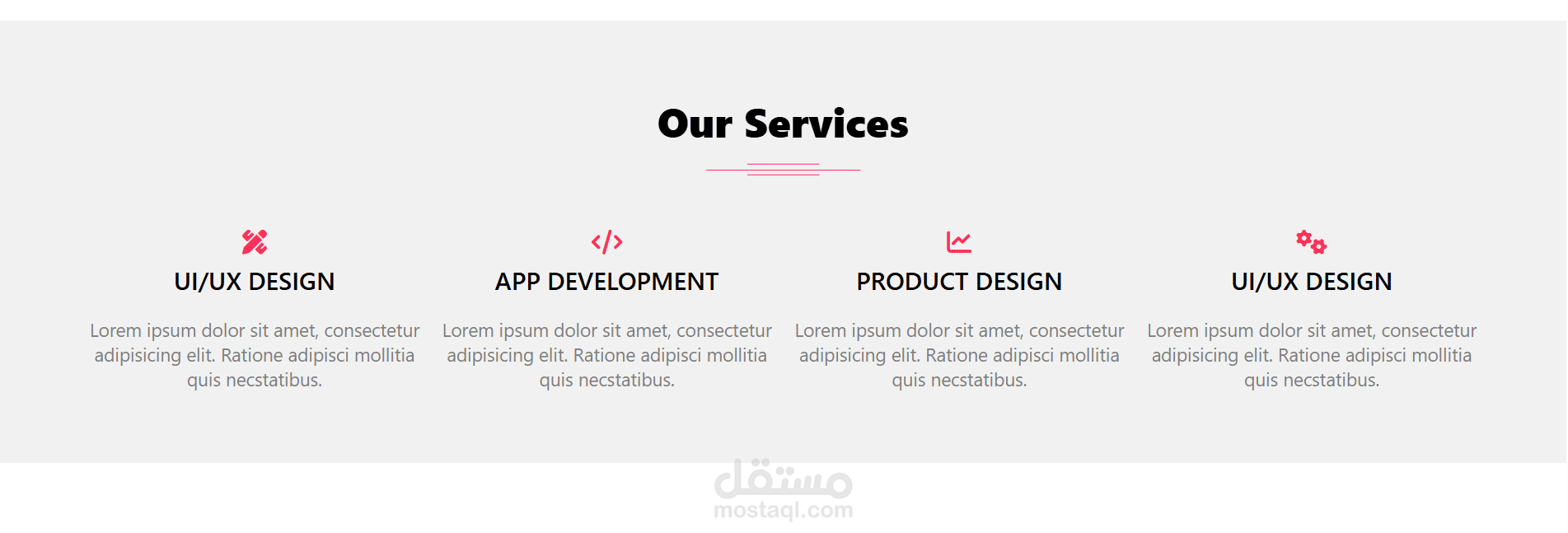 Services: Highlights the main services or solutions offered, each with a detailed description and icon.