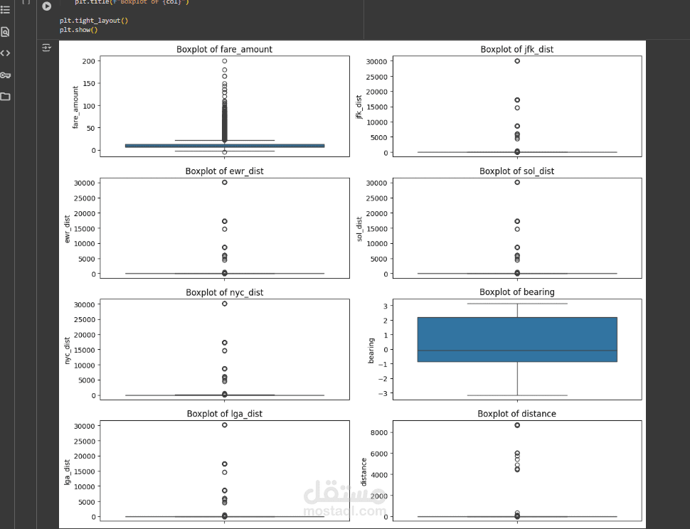 Checked for outliers in numerical columns such as fare_amount and distance.