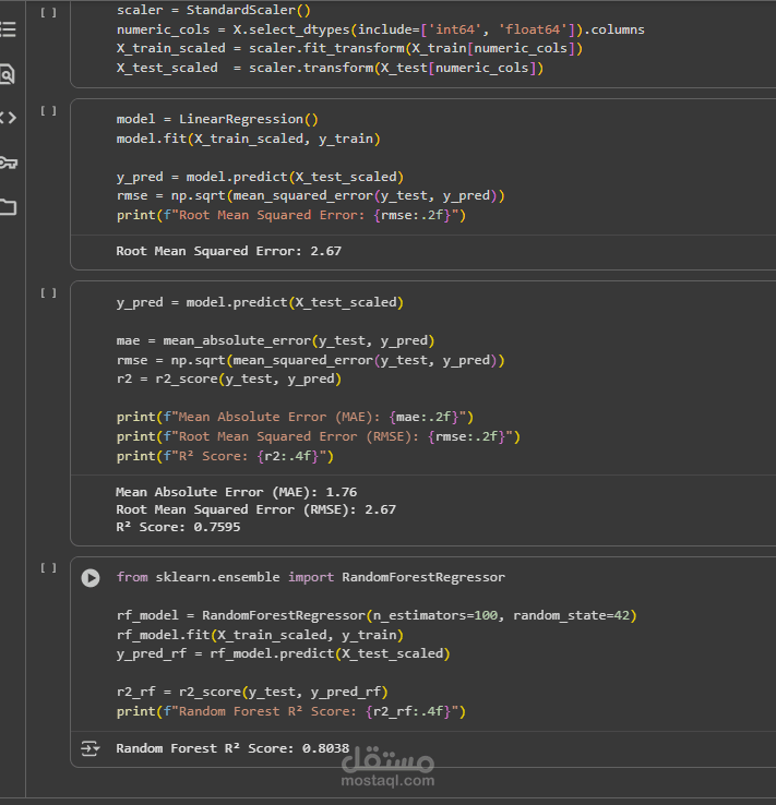 Evaluated model performance using R² score and Mean Squared Error (MSE).