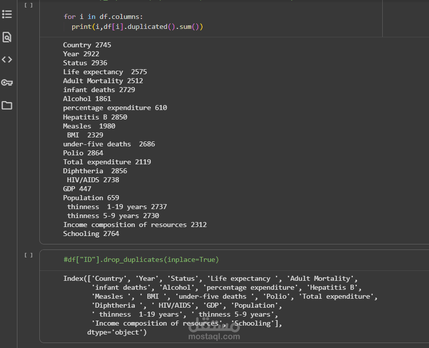 جمع البيانات: تجميع متغيرات متعددة مثل إجمالي الناتج المحلي (GDP)، ومستويات التعليم، ونفقات الصحة، وعوامل الخطر (مثل التدخين)، ومعدلات الوفيات.