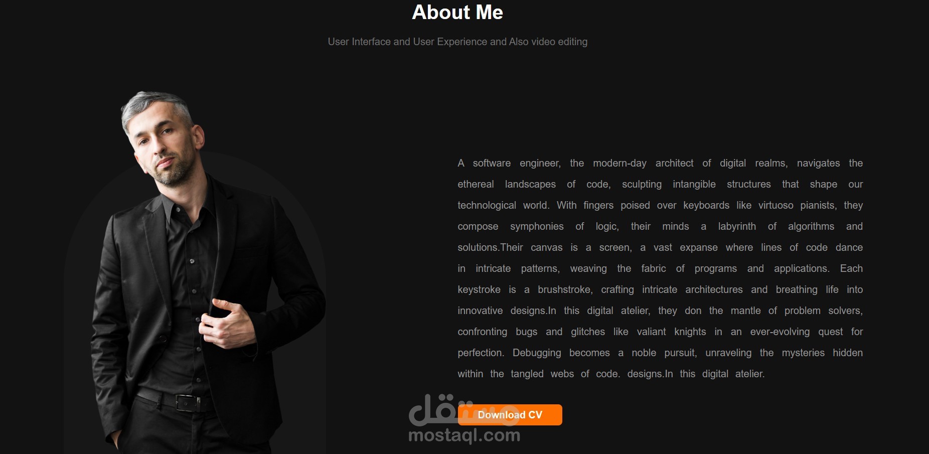 زر "Download CV" (تحميل السيرة الذاتية).