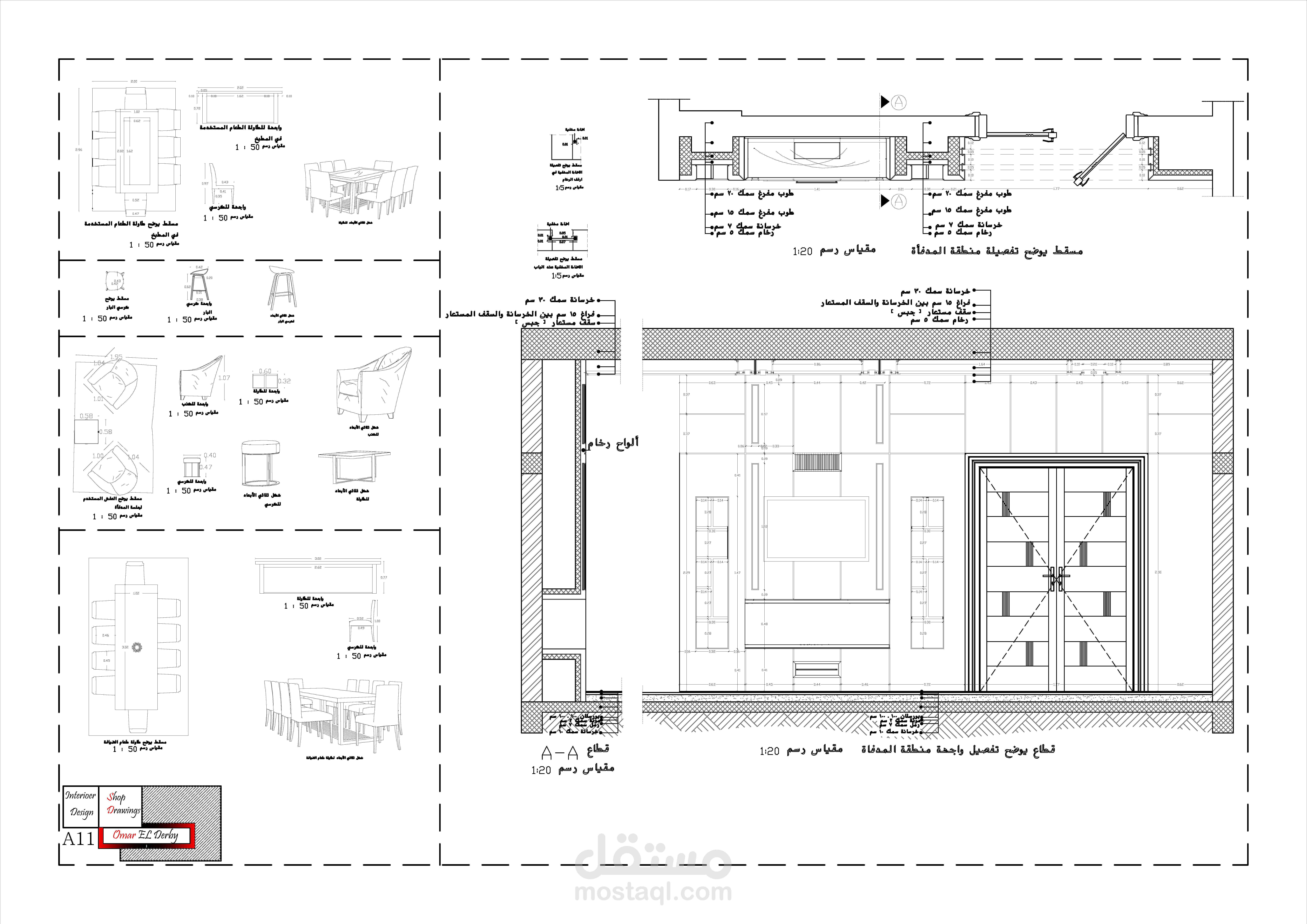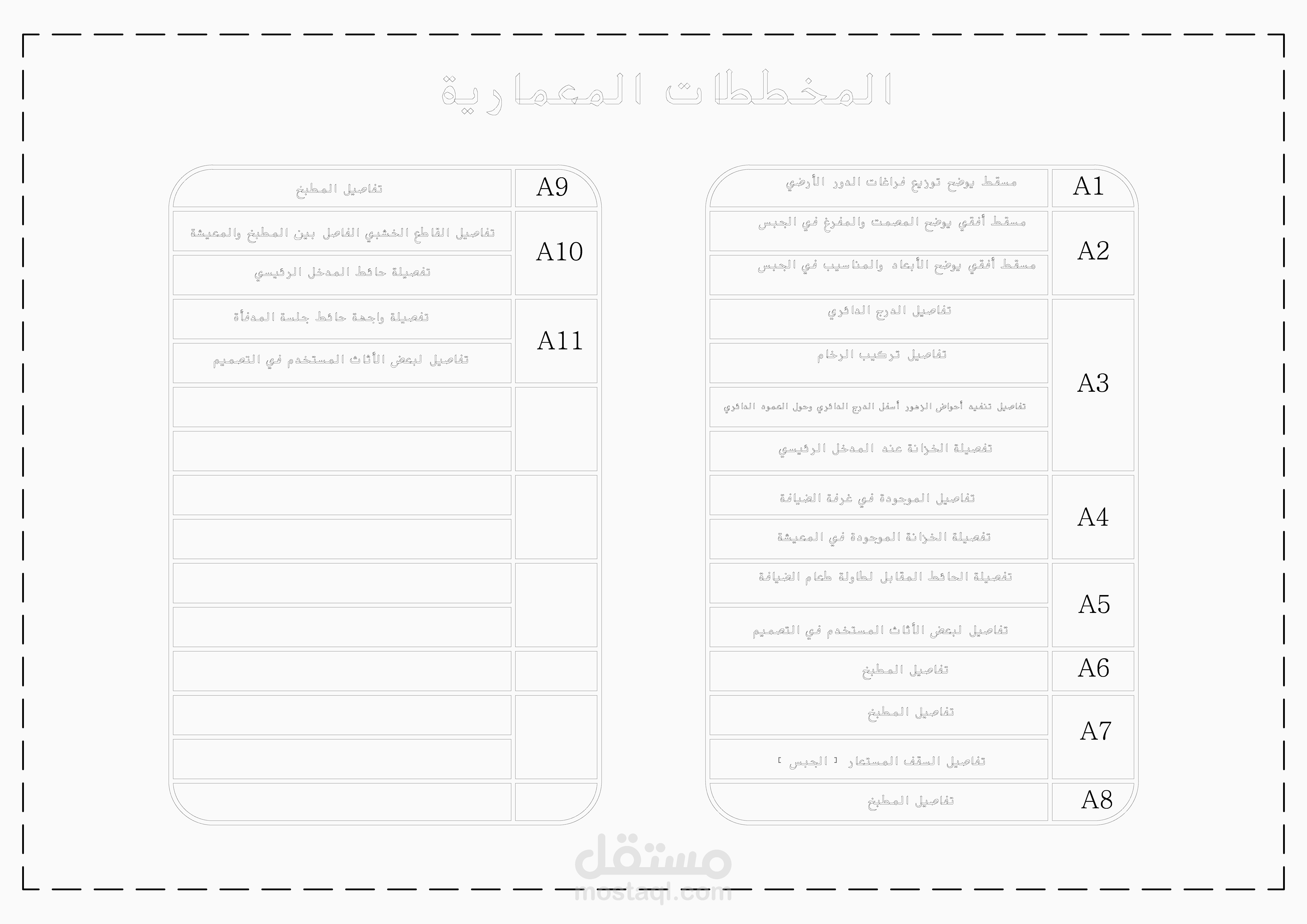 إعداد مخططات تنفيدية لمشروع تصميم داخلي لفيلا سكنية
