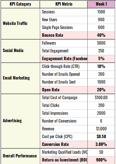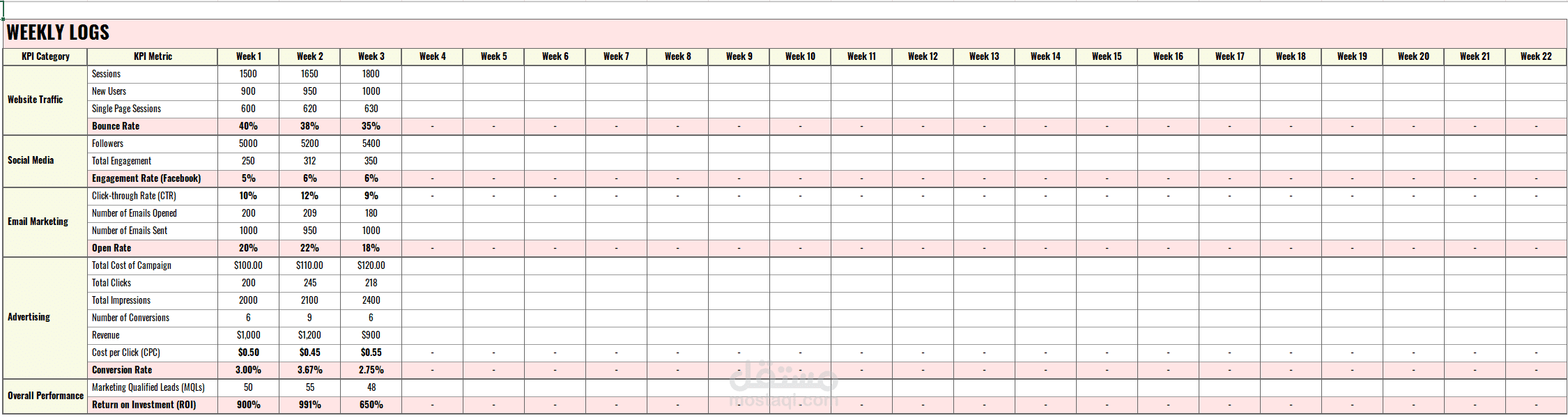 تحليل أسبوعي متدرج لتتبع الأداء وتحسين القرارات التسويقية.