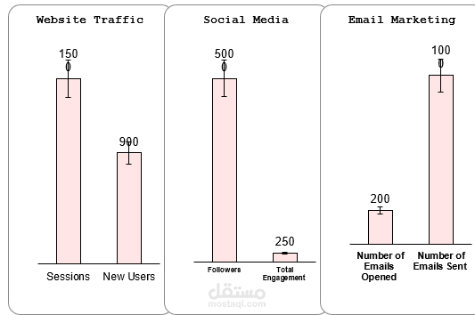Email Marketing: معدل الفتح، عدد الرسائل المرسلة والمفتوحة.