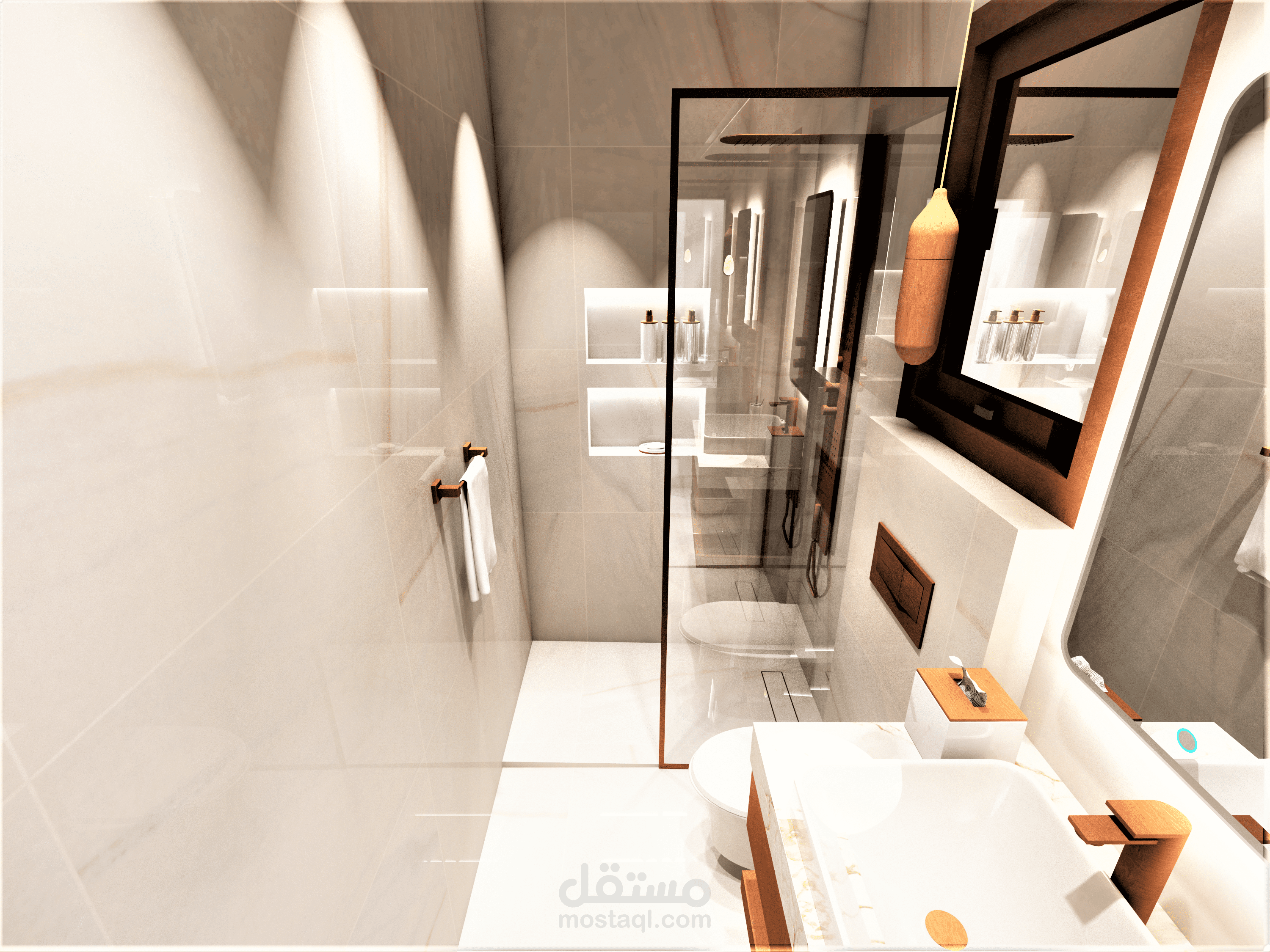 "Designed a modern minimalist bathroom (approx. 8 m²) focusing on simplicity, clean lines, and functional space. Created 3D renders showcasing realistic materials, lighting, and fixtures to help the client visualize the final result before implementation. The project enhanced client satisfaction and streamlined decision-making.