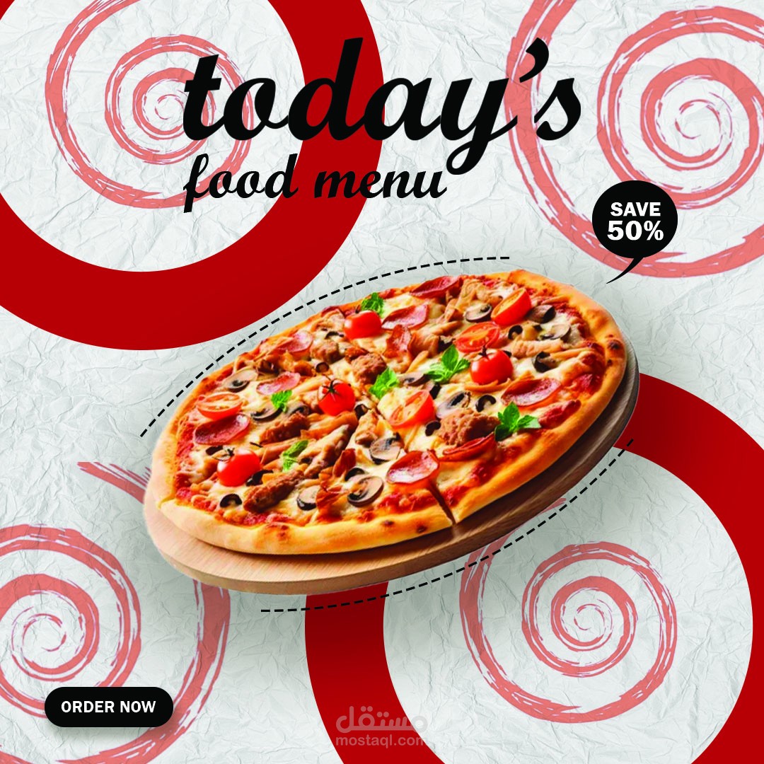 تركز التصاميم على الطاقة والدفء من خلال استخدام اللون الأحمر الحيوي، وتكوينات نظيفة، وخطوط ديناميكية تجذب الانتباه وتثير الشهية.