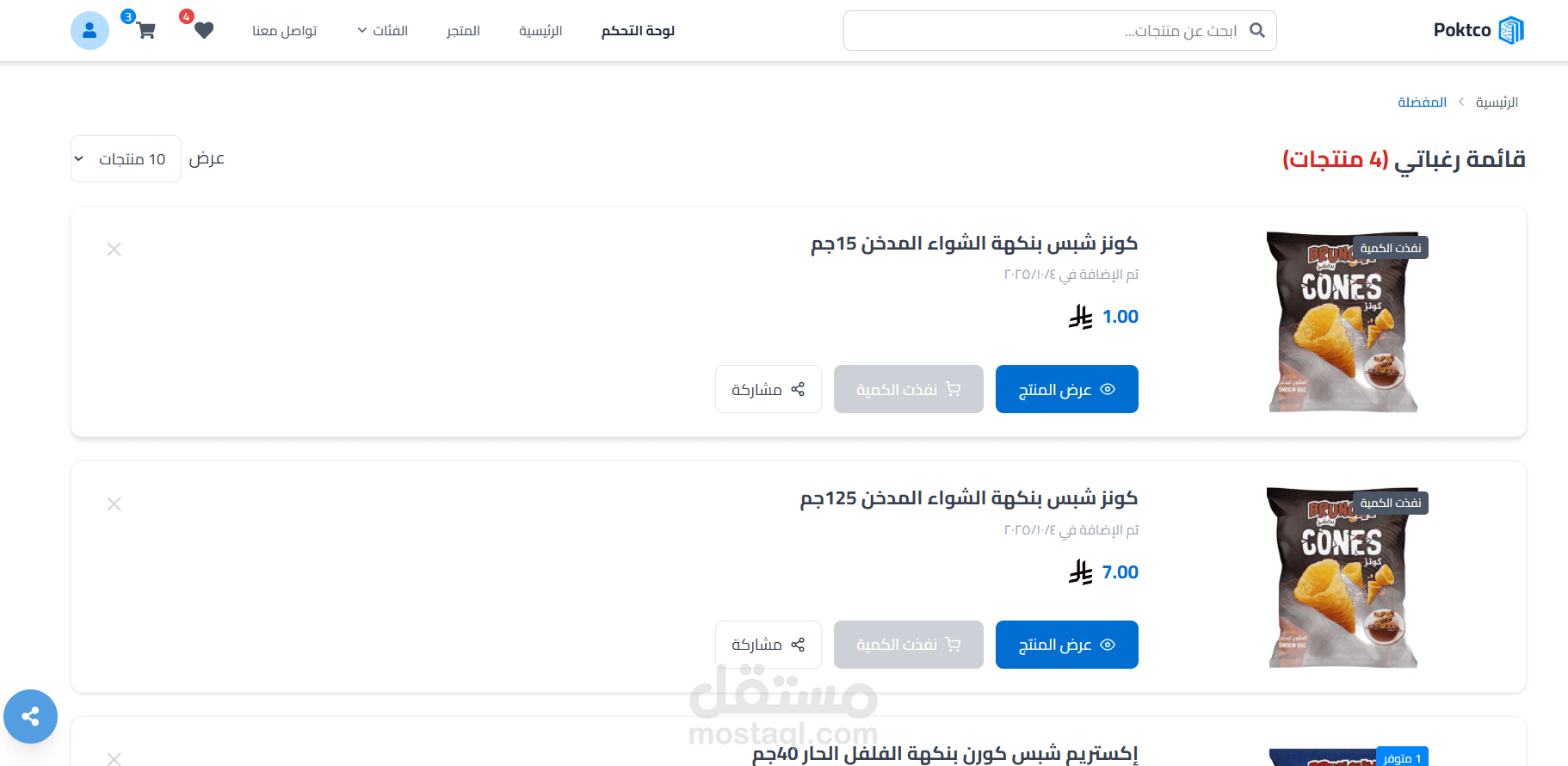 CRUD كامل للمنتجات (إنشاء، قراءة، تعديل، حذف).