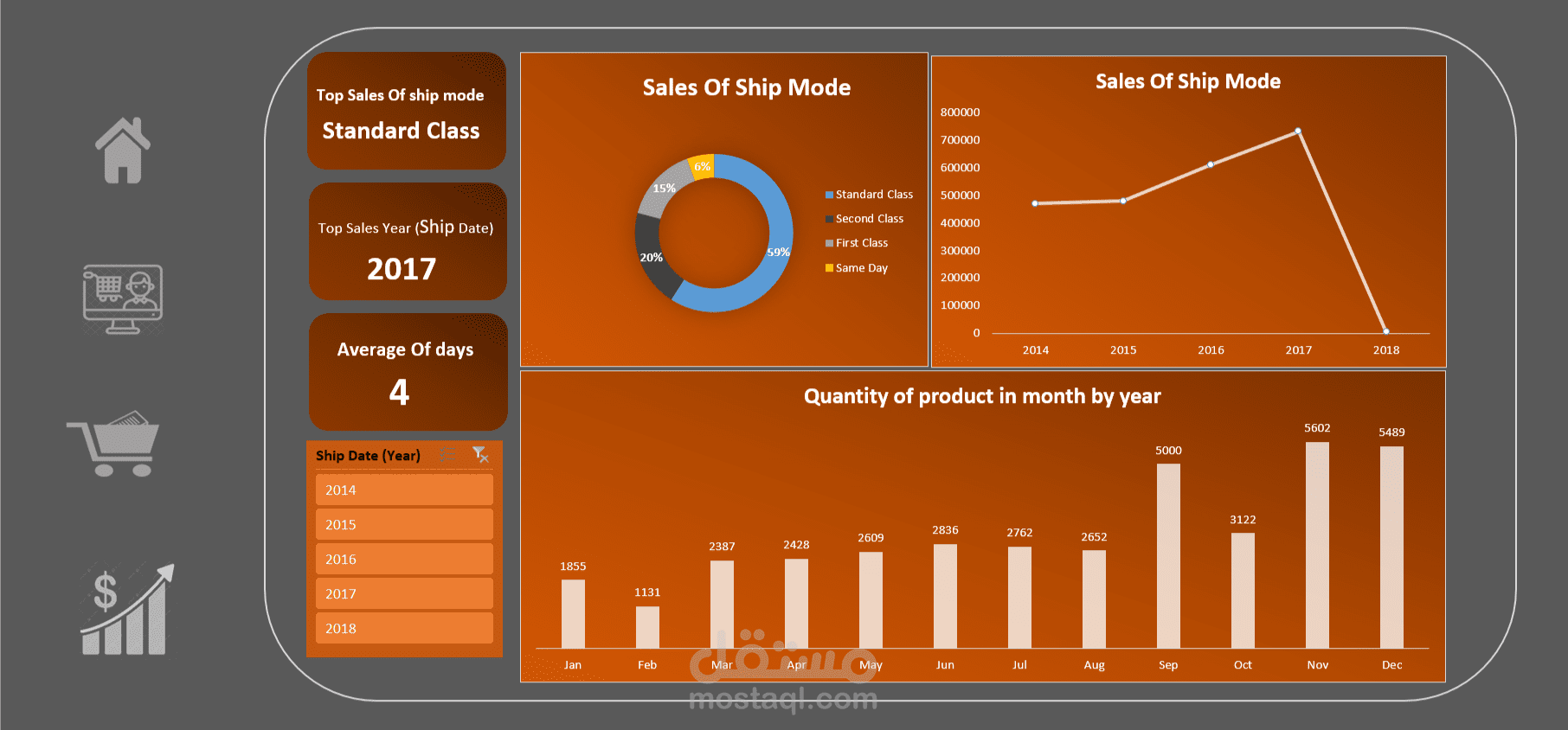 The dashboard summarizes key business metrics and helps visualize performance trends over time.