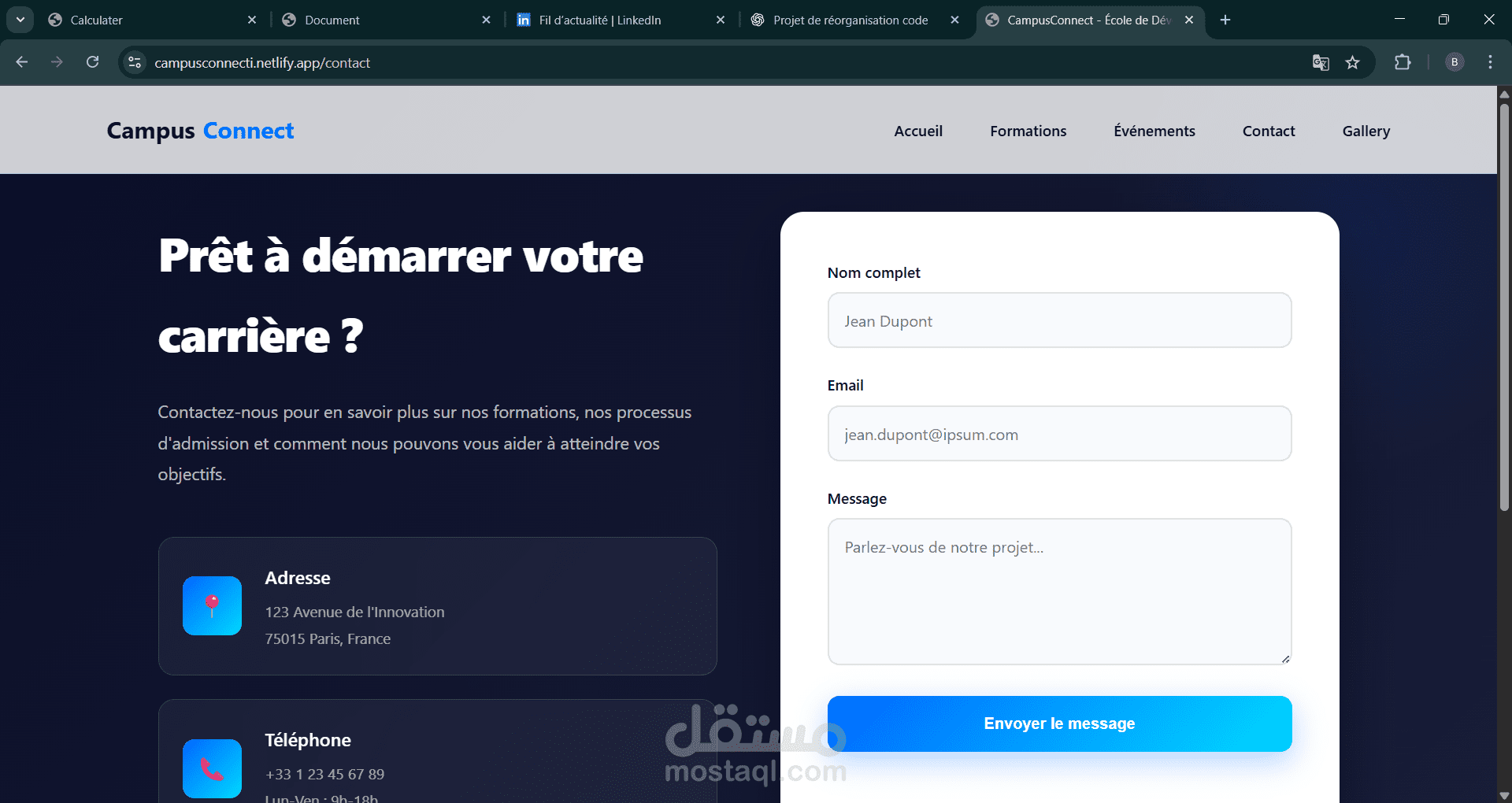 CampusConnect is a web platform designed for a software development school, aiming to “turn your passion into a career.”