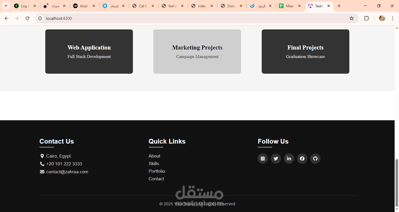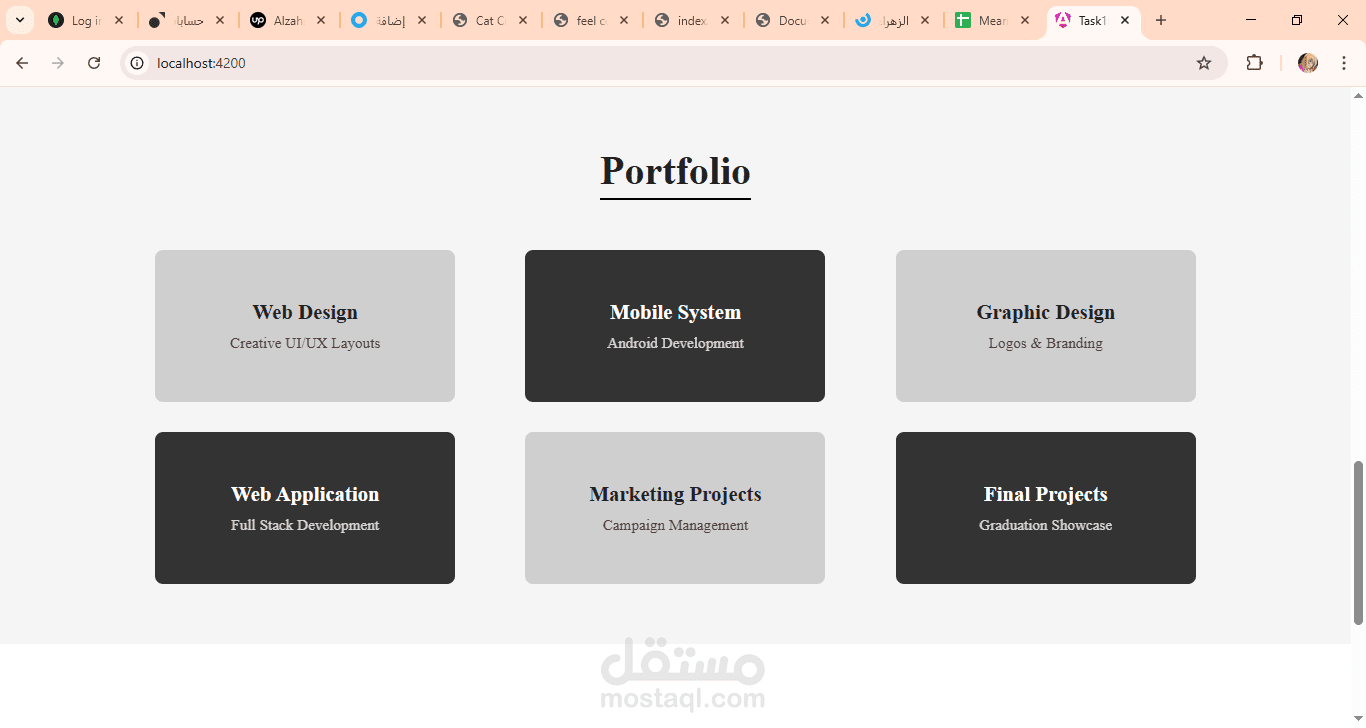 إنشاء معرض أعمال (Portfolio) منظم لتصنيف المشاريع حسب مجالات التخصص (تطبيقات الويب، تطبيقات الجوال، التصميم الجرافيكي).