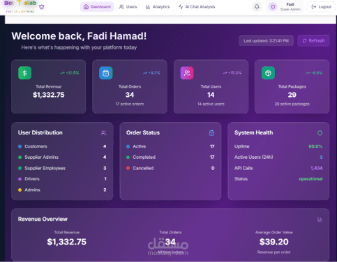 Built with React.js (web) & React Native (mobile), Node.js, MongoDB. Features include order management, real-time tracking, and role-based access.