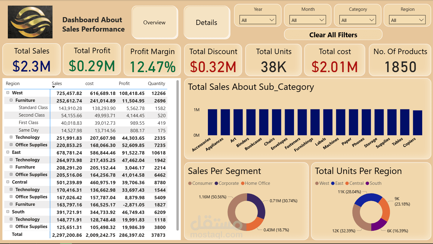 لوحة تحكم تفاعلية لتحليل أداء المبيعات