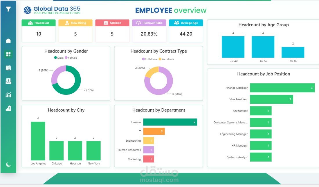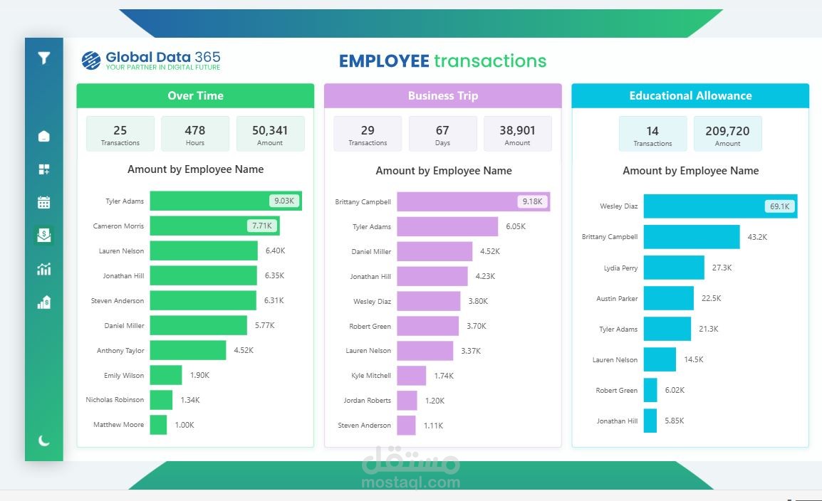 The dashboard is fully interactive, allowing users to apply filters on each page through dedicated filter buttons and navigate seamlessly between pages using sidebar icons for a smooth experience.