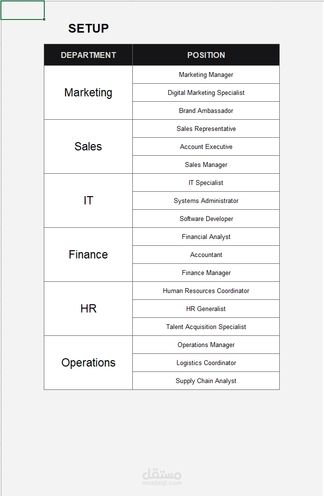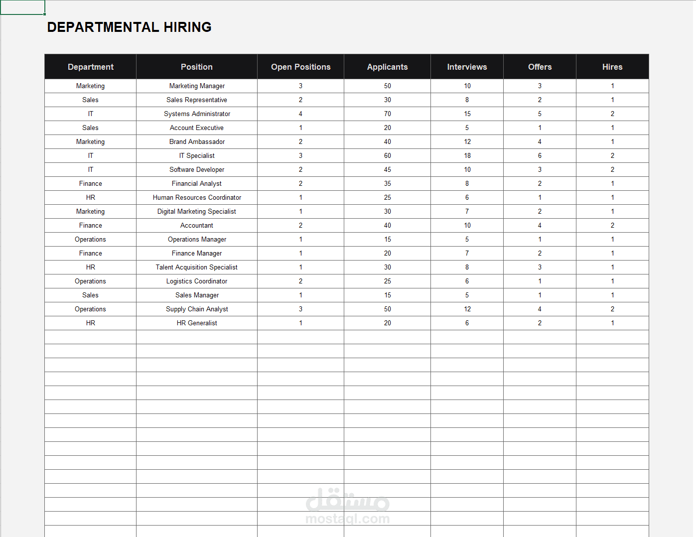 توزيع الأقسام وعدد الوظائف المفتوحة في كل منها.