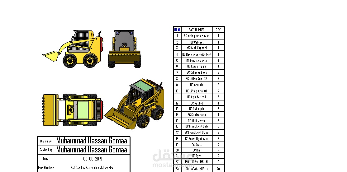 تصميم لودر صغير باستخدام برنامج السوليد ووركس بعد الحصول على الأبعاد