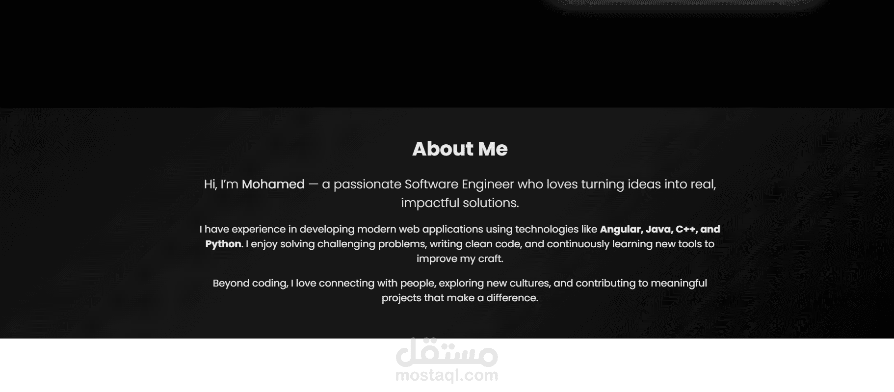 يشمل التصميم صفحات: رئيسية – عنّي – تواصل، مع إمكانية طلب صفحات إضافية أو تعديلات حسب الحاجة.