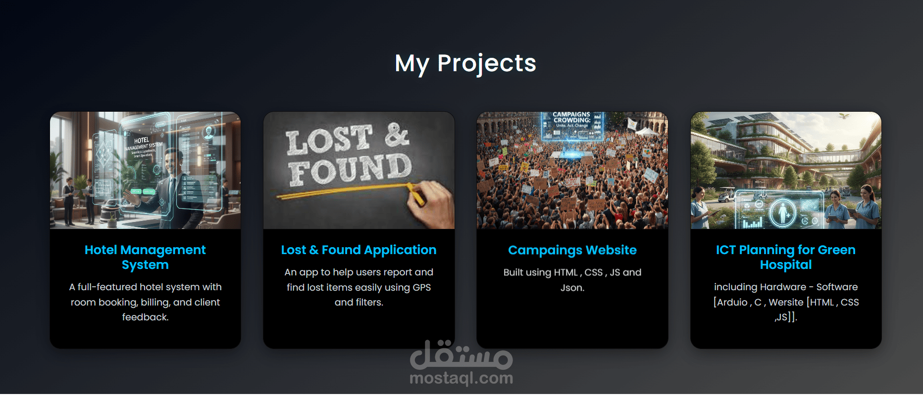 سأقوم بتصميم موقع بورتفوليو شخصي أنيق واحترافي باستخدام HTML وCSS (مع إمكانية إضافة JavaScript بسيط)، يعرض معلوماتك ومهاراتك وأعمالك بطريقة منظمة وجذابة.