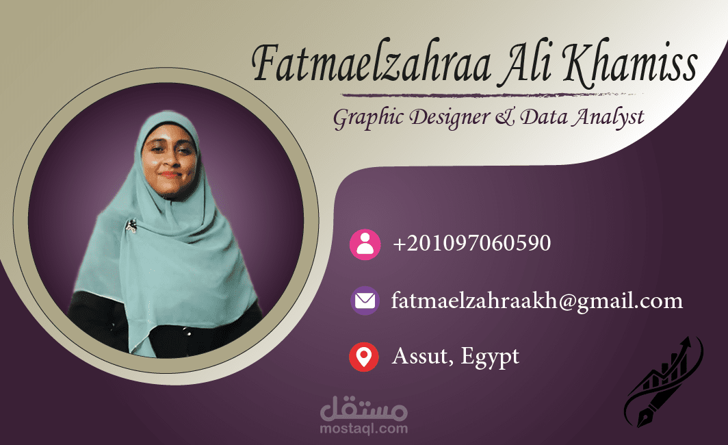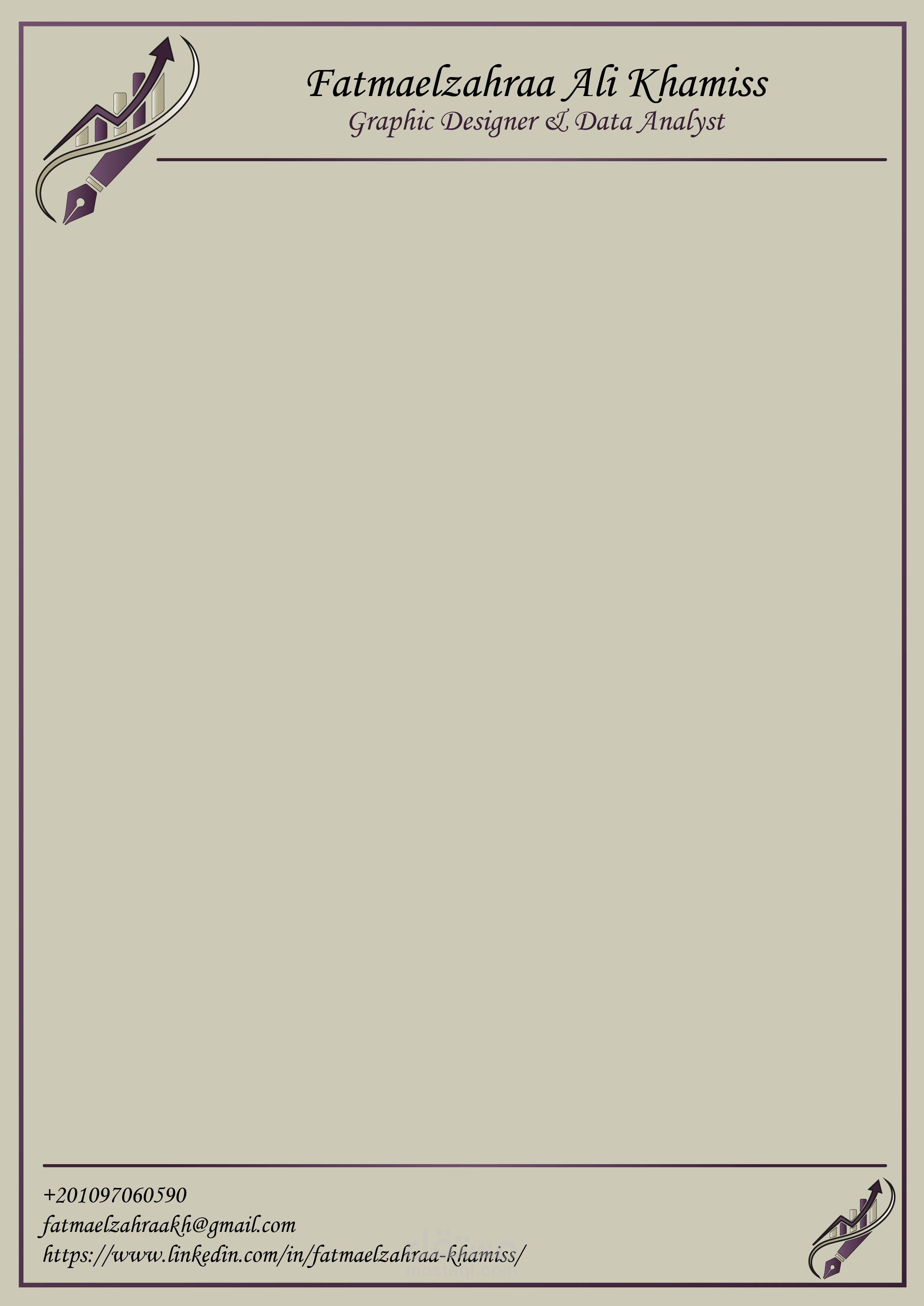 قمت بتصميم هوية بصرية لي باستخدام برنامج الستريتور وفوتوشوب عناصر الهوية الاساسية التي عملت علها هي اللوجو والكارت الشخصي وتصميم يناسب ان يكون غلاف نوتبوك وورقة مراسلات رسمية