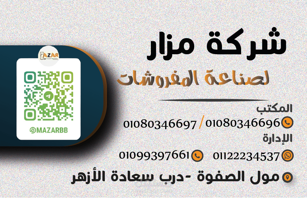 وصف المشروع: تصميم بطاقة عمل احترافية من وجهين (أمامي وخلفي) لـ "شركة مزار"، وهي شركة متخصصة في صناعة المفروشات.