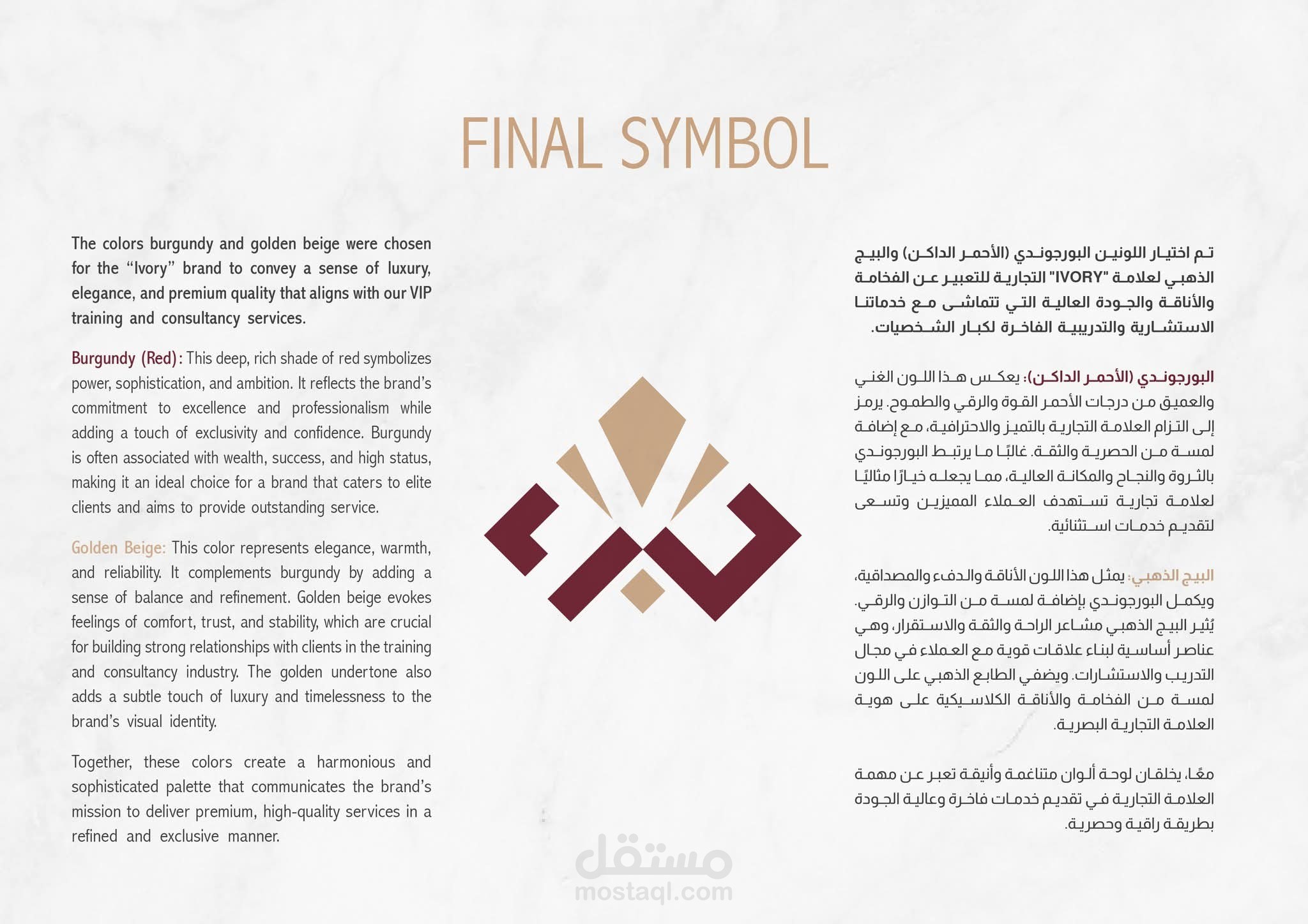 تم تنفيذ مشروع تصميم هوية بصرية متكاملة لعلامة "Ivory"، وهي علامة تهتم بالفخامة، البساطة، والرقي. اعتمدت عملية التصميم على دراسة دقيقة للعلامة من خلال بريف كامل تم مناقشته مع العميل لتحديد شخصية العلامة والقيم التي ترغب في إيصالها للجمهور المستهدف.