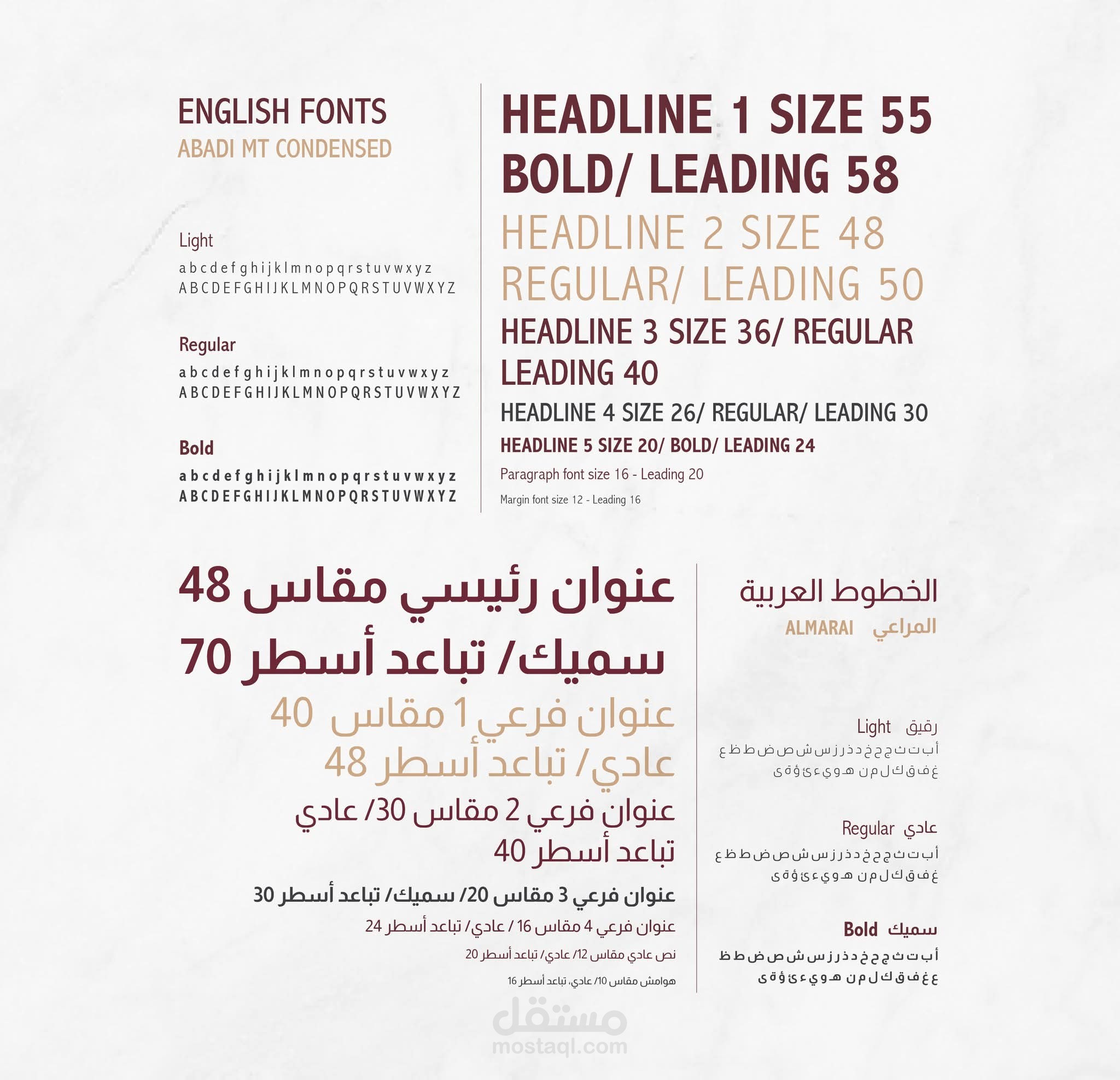 ضبط تباعد الحروف (Kerning) لتناسب الهوية الراقية.