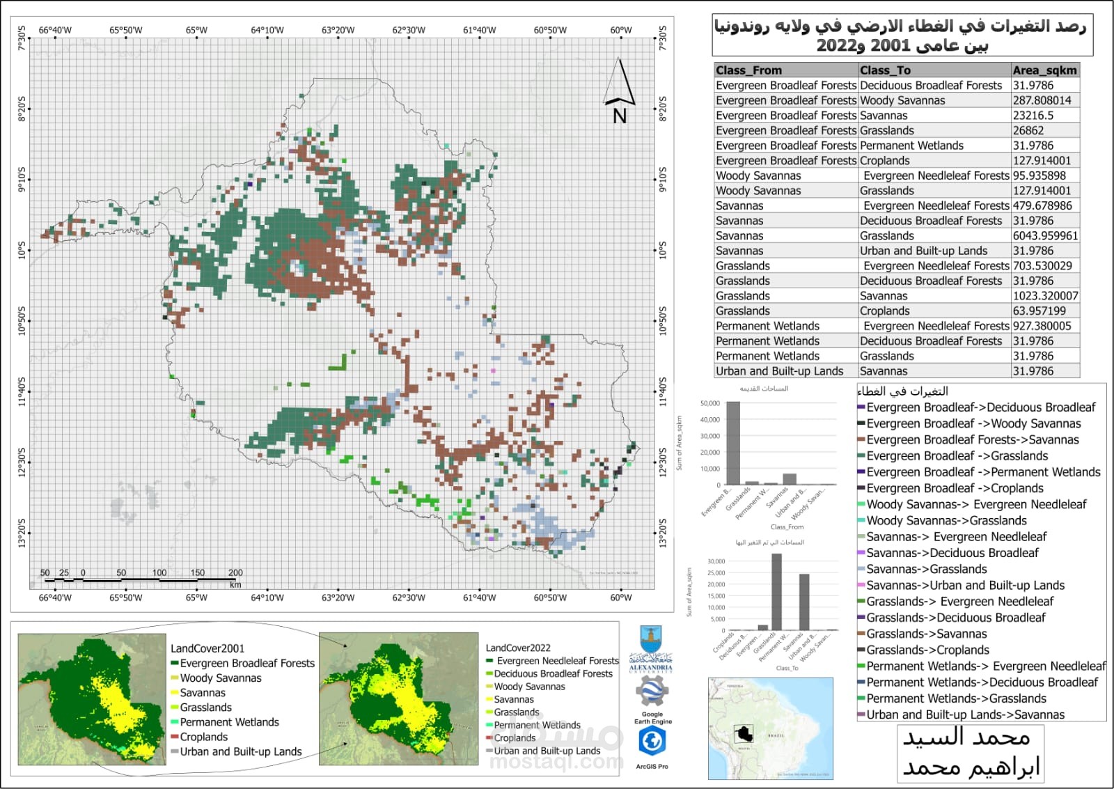 Download land use data from Google Earth Engineer and upload it to Arc Pro and analyze spatial changes between different times to understand the impact of changes.