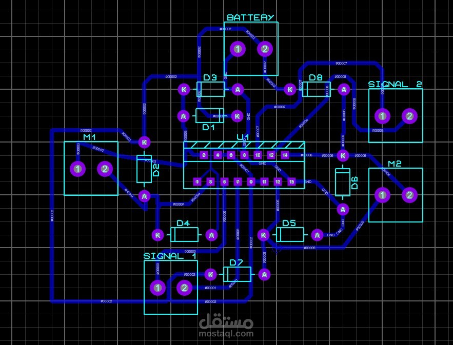 يشمل العمل تصميم الدائرة الإلكترونية من البداية، محاكاة الإشارات واختبار الأداء قبل التنفيذ الفعلي، ثم إنشاء التصميم الطباعي للوحة (PCB Layout) مع مراعاة قواعد التصميم الكهربائية والميكانيكية.