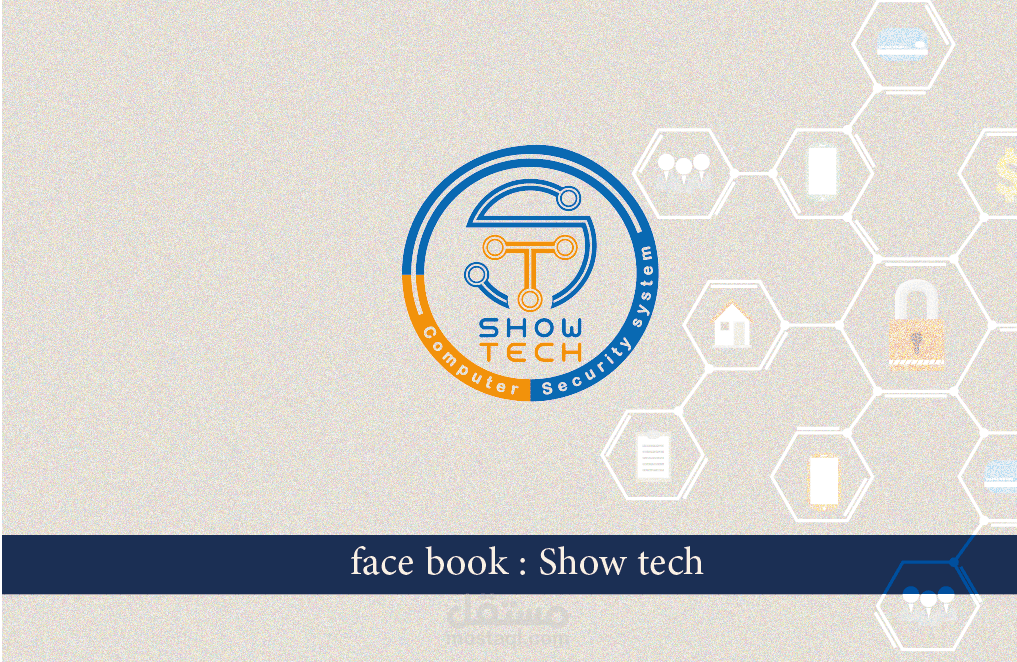 وصف المشروع: تصميم بطاقة عمل ثنائية الجوانب (أمامية وخلفية) لشركة شو تك، المتخصصة في أجهزة الكمبيوتر وأنظمة الأمن.