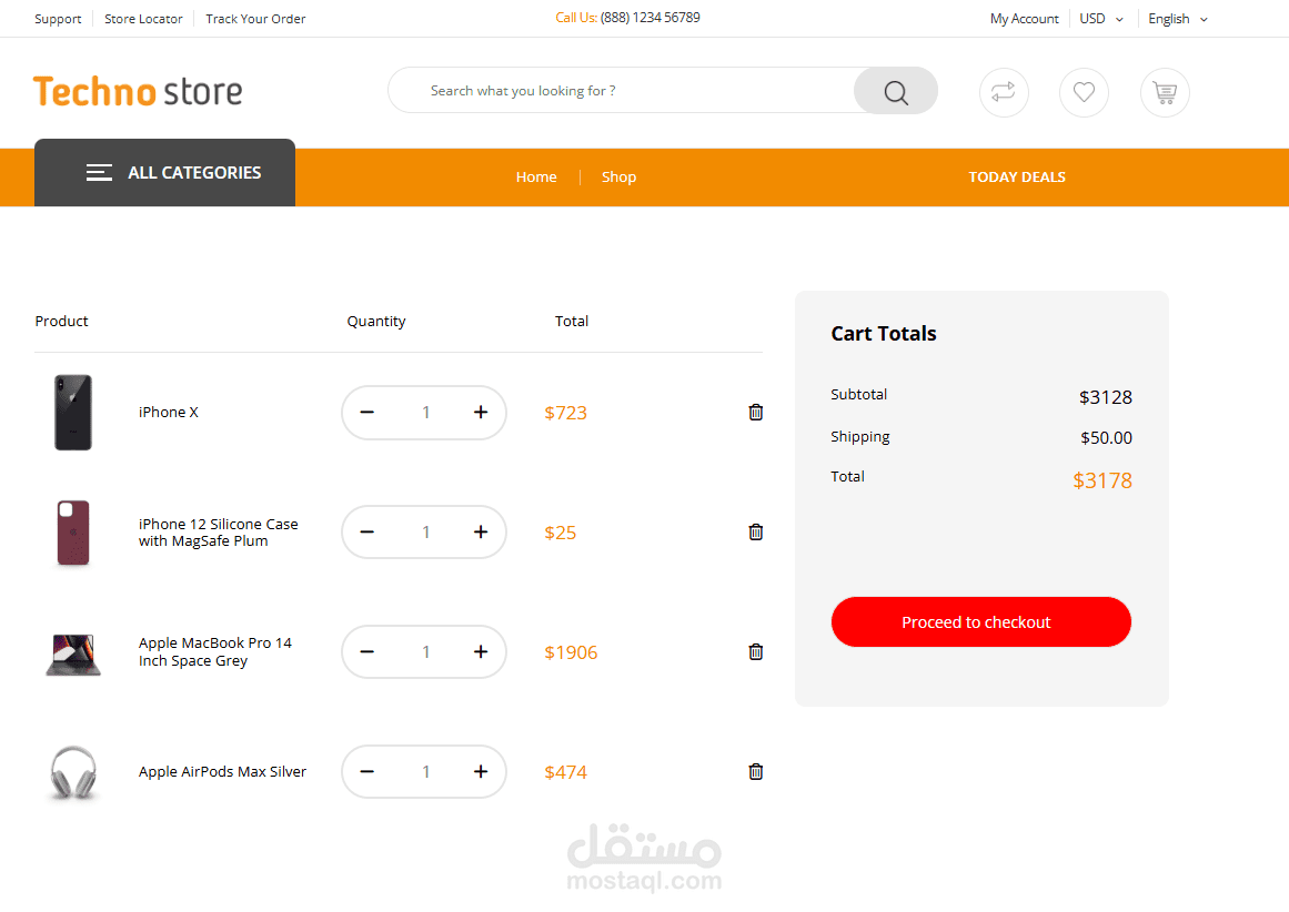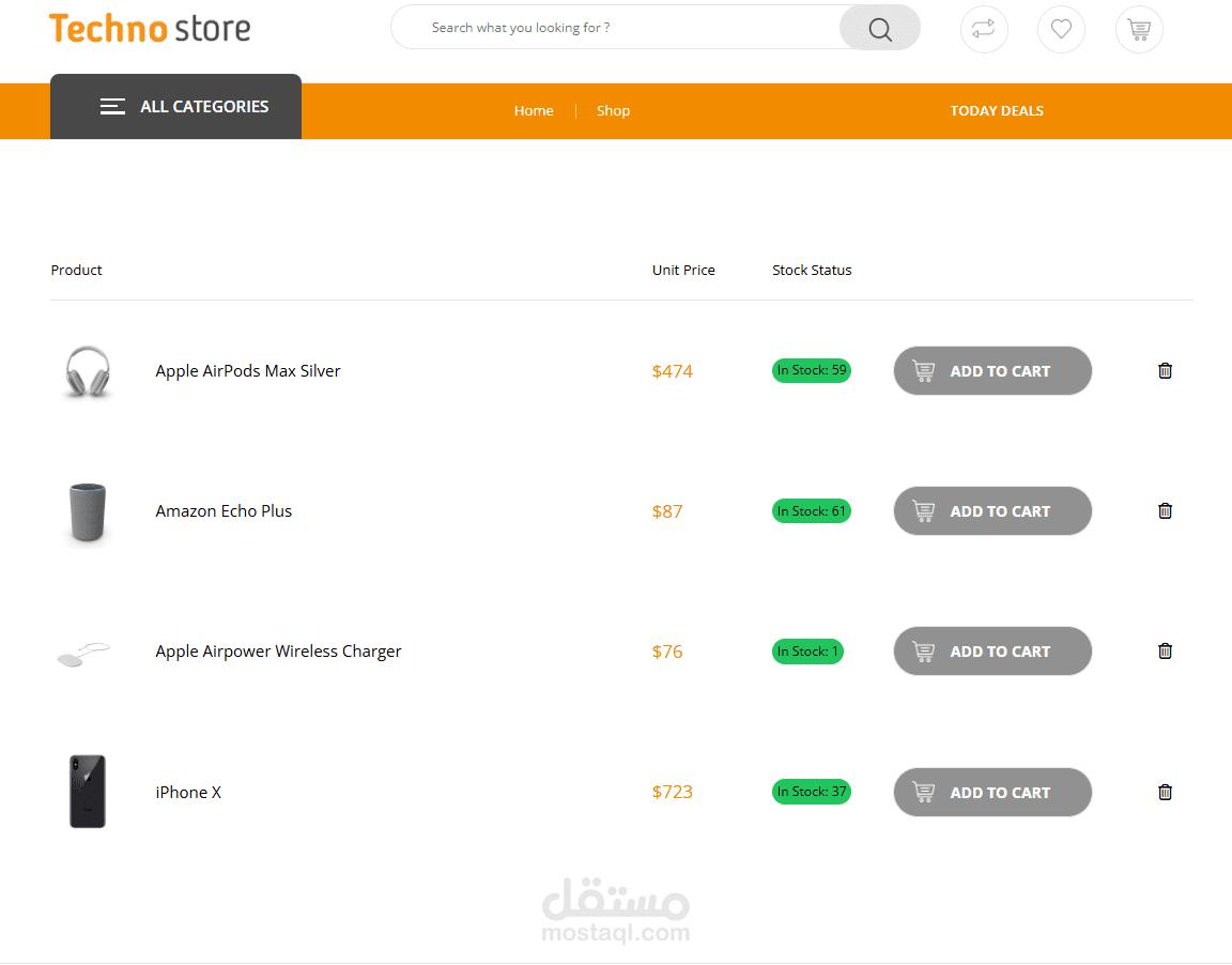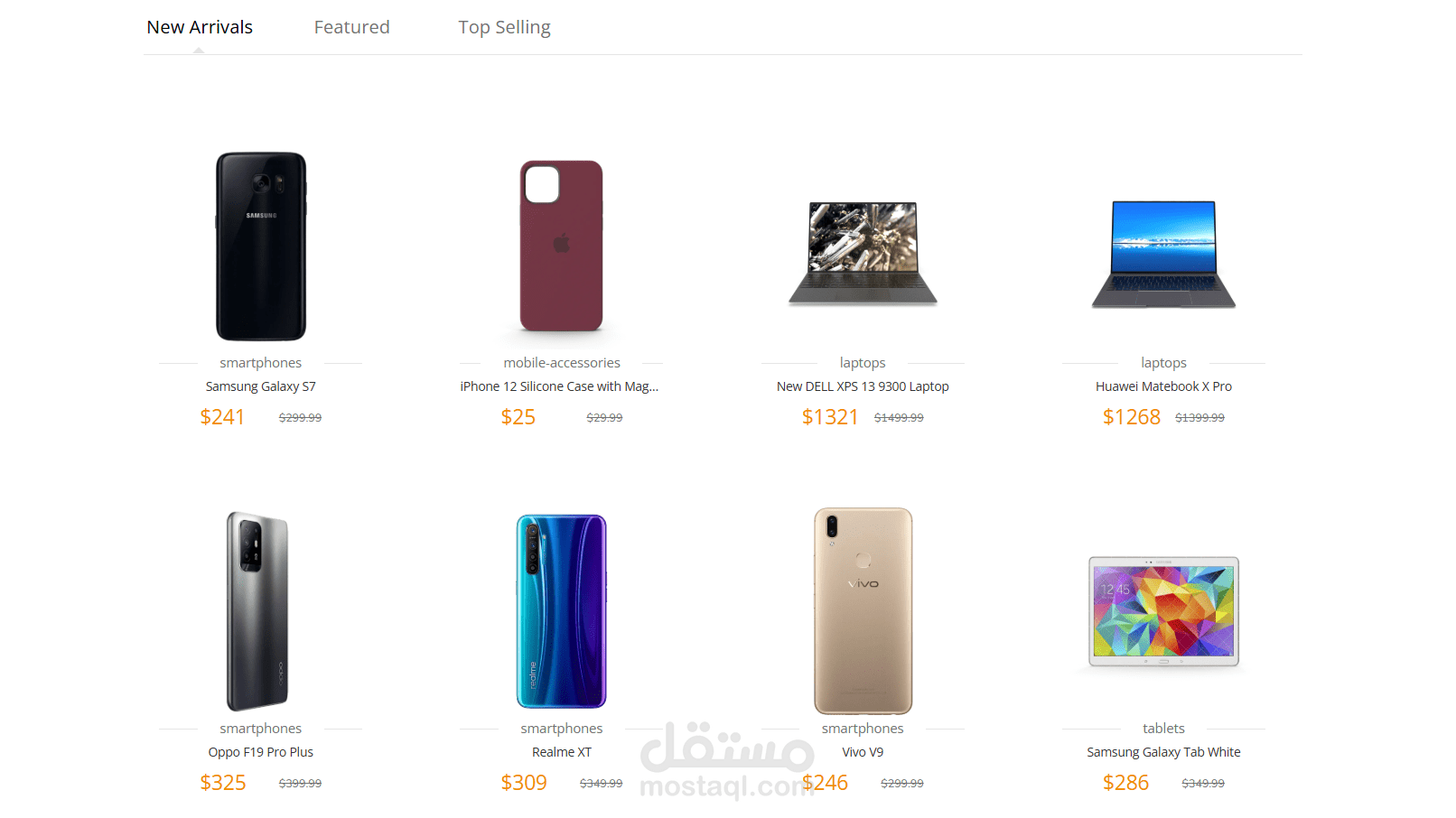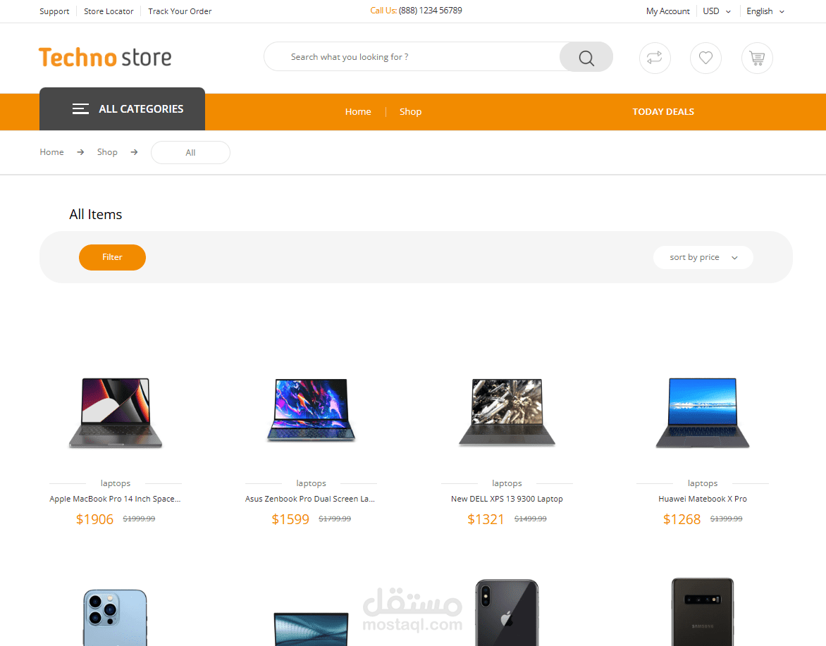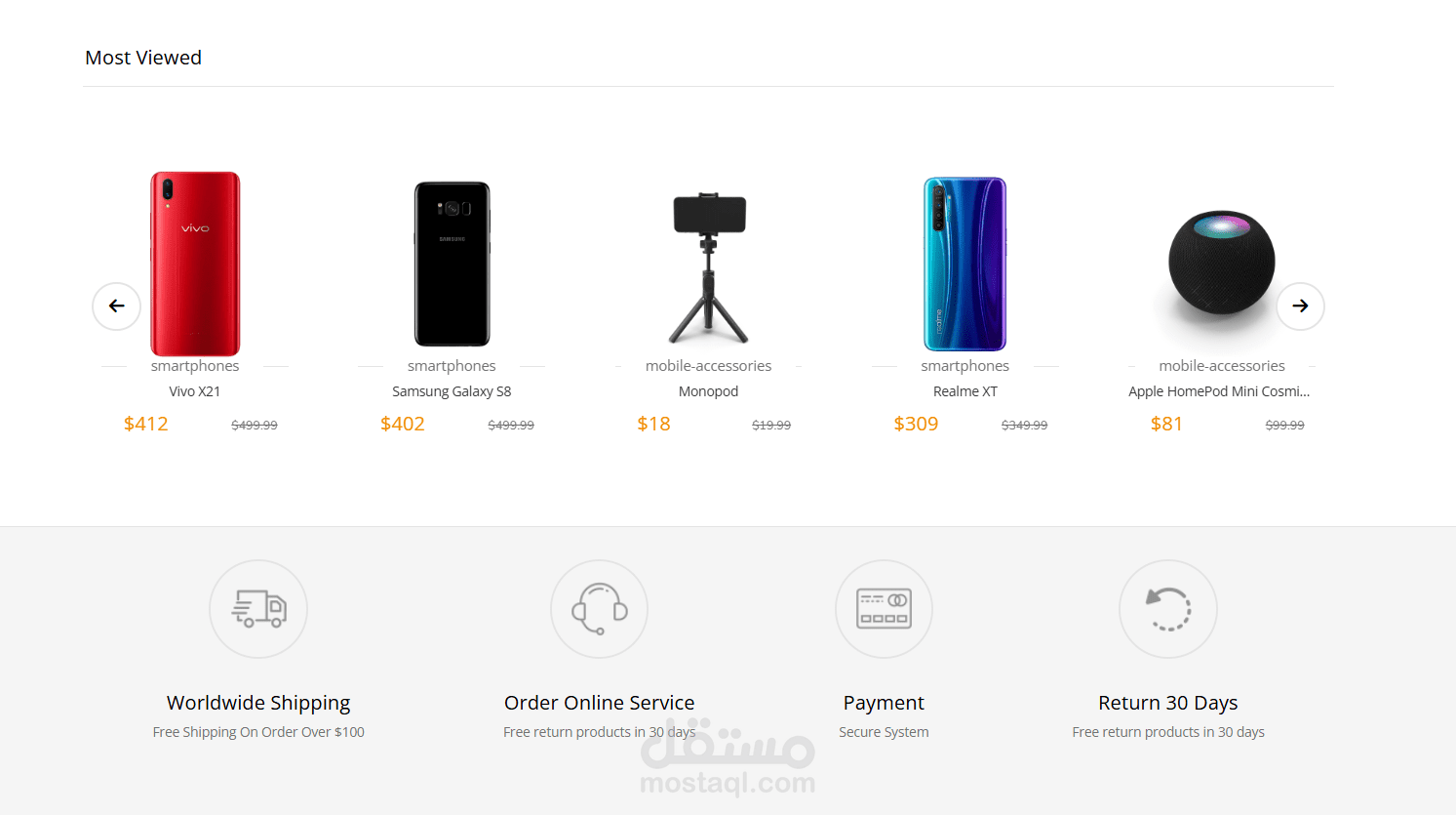 صفحات رئيسية وفئات ومنتجات مميزة (feature, today deals, most viewed).