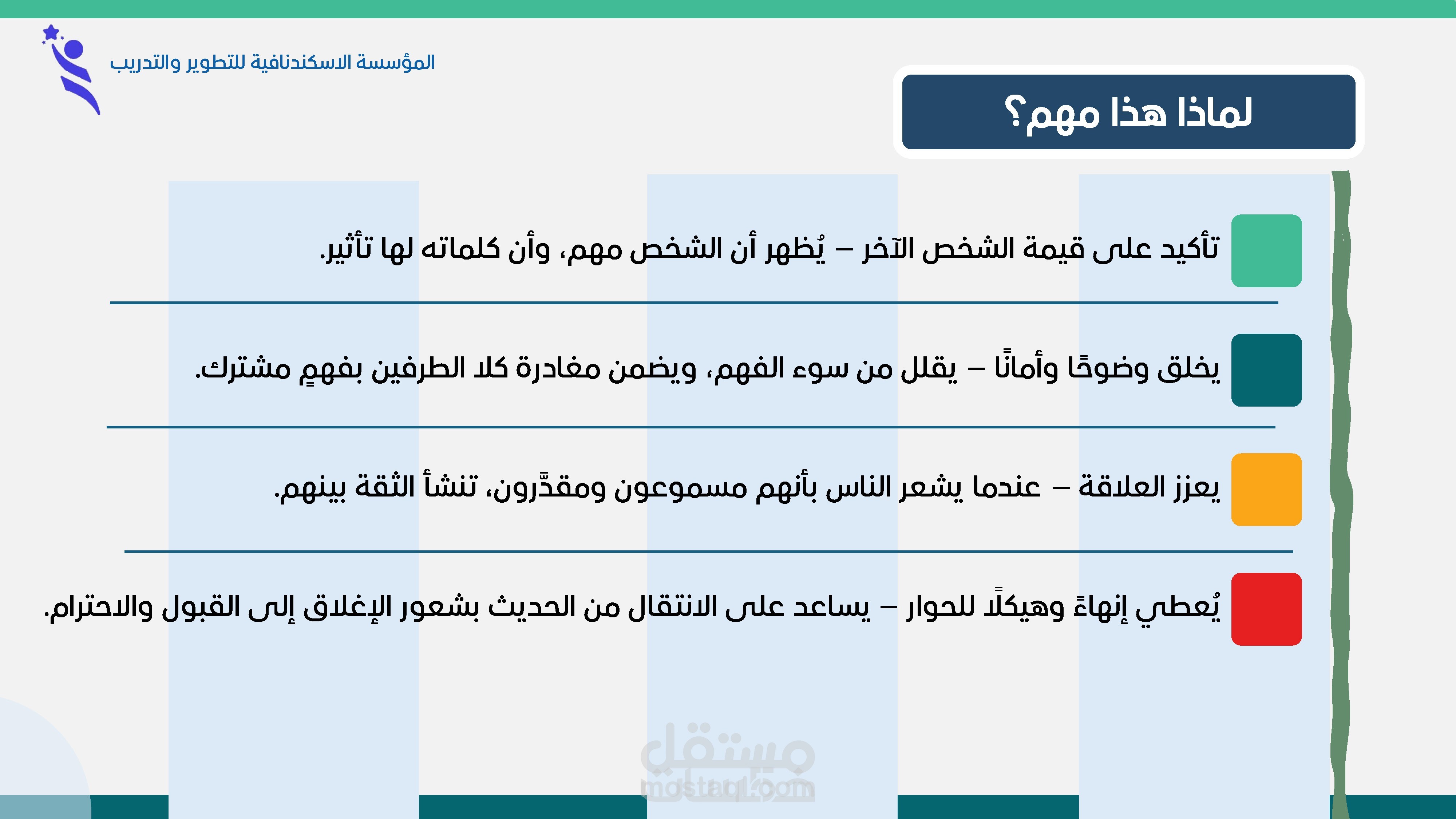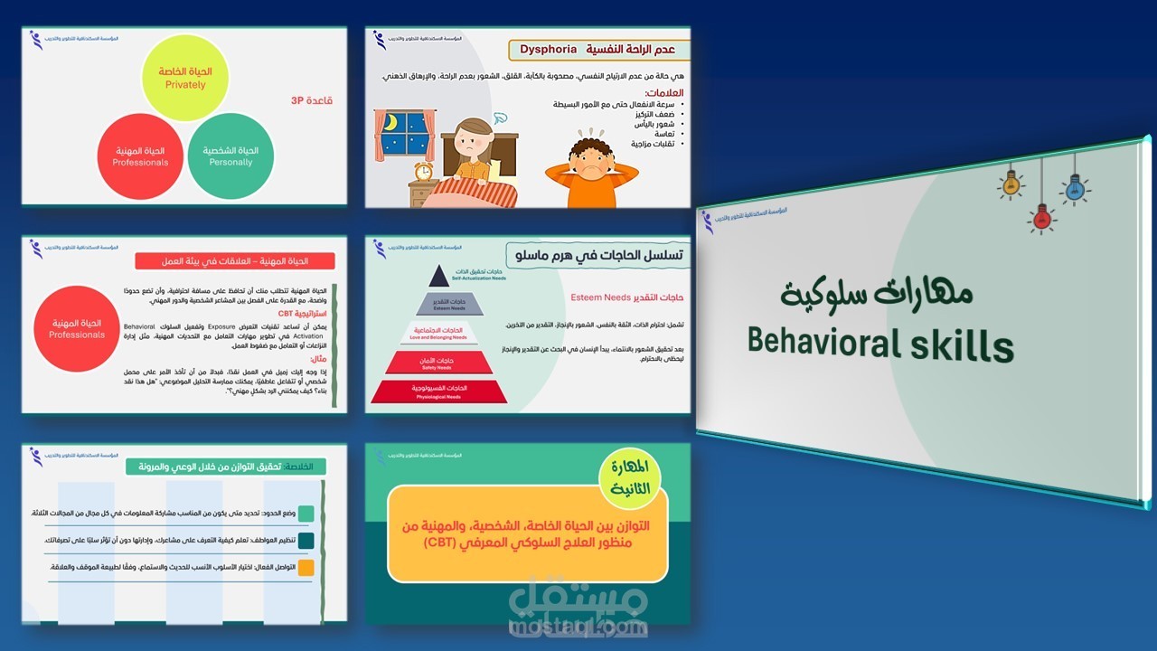 - مؤثرات بصرية (Animations) دقيقة تُبرز العناوين والنقاط المهمة بطريقة جذابة ومنظمة.
