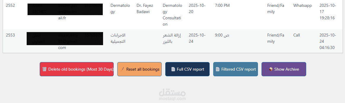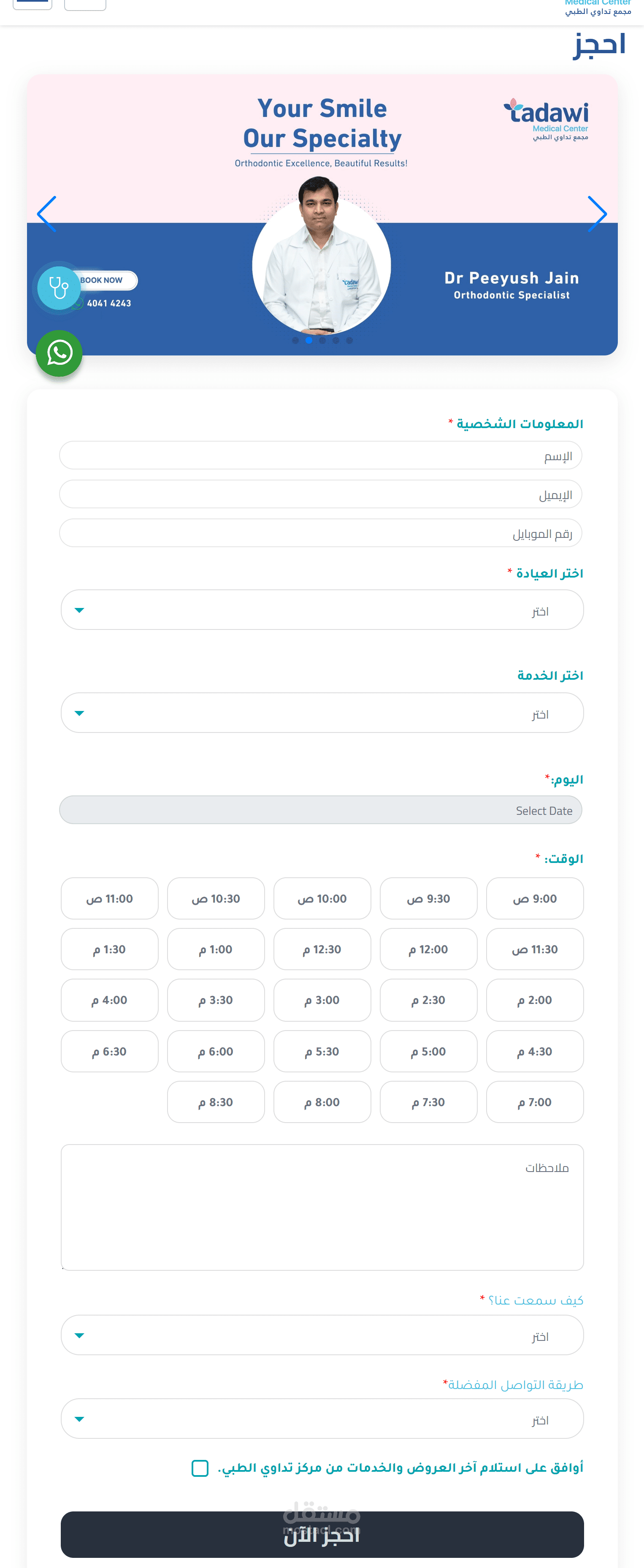 بناء فورم حجز لموقع مركز تداوي الطبي