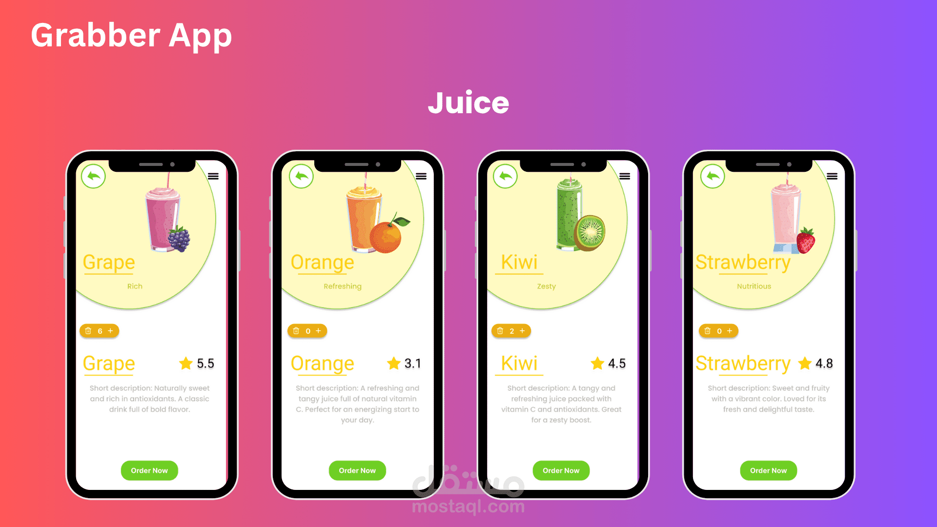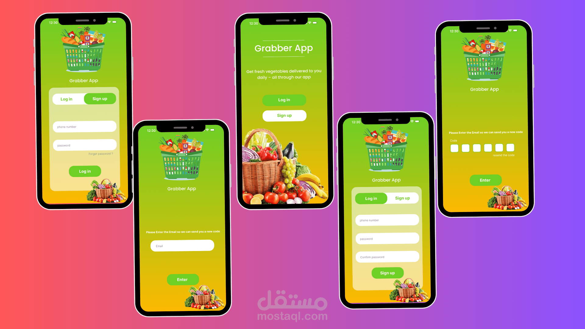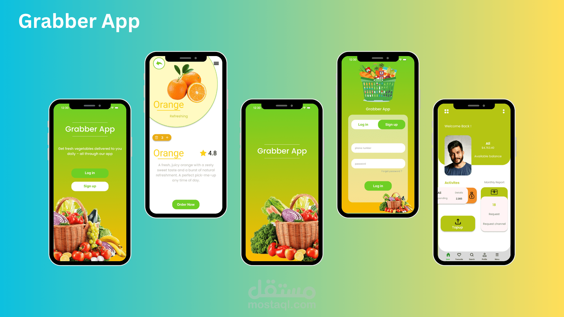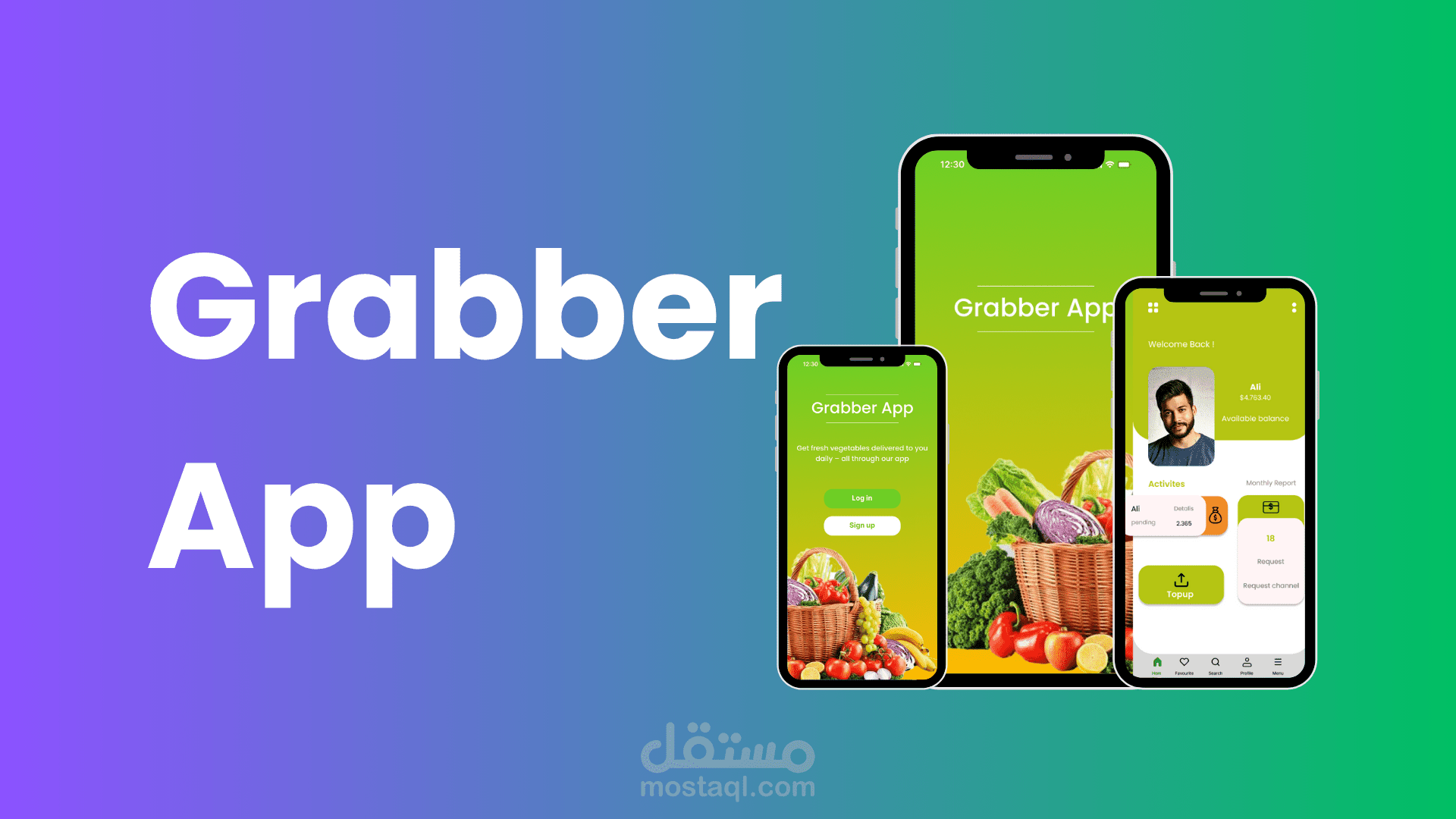 مشروع جديد من أعمالي في تصميم واجهات المستخدم وتجربة المستخدم UXUI لتطبيق Grabber App