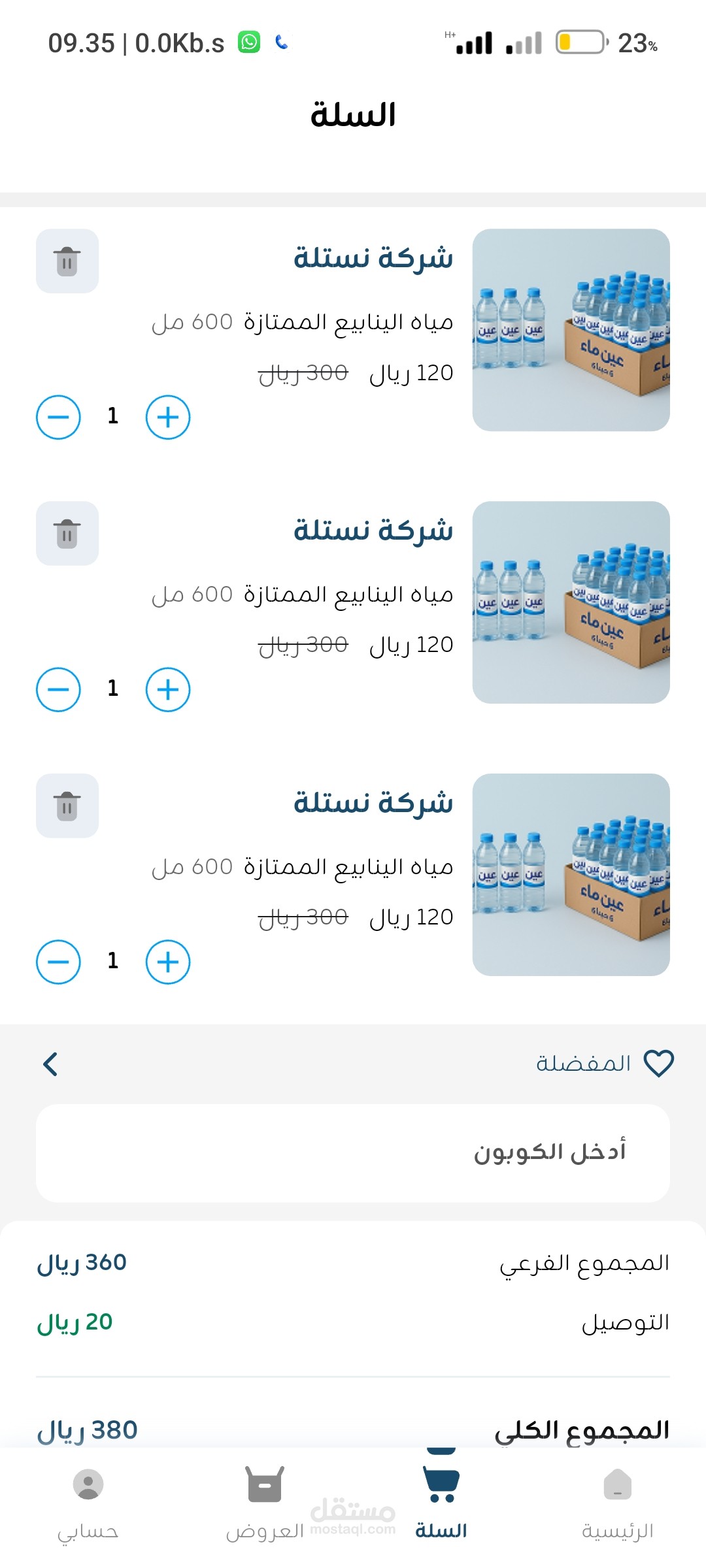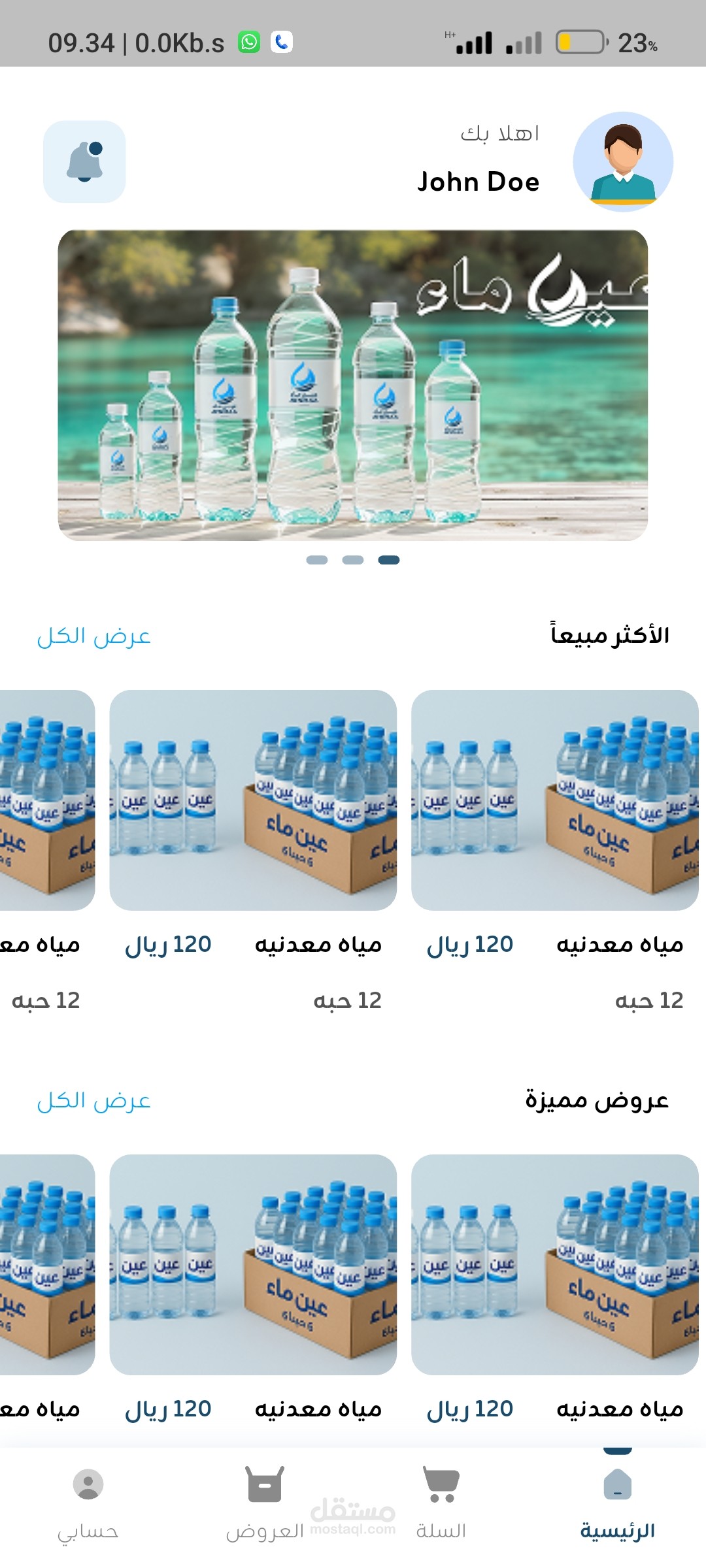 تطبيق تجارة الكترونى متخصص فى بيع المياه