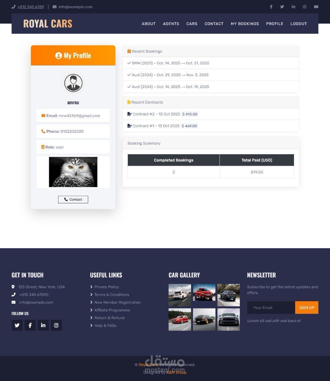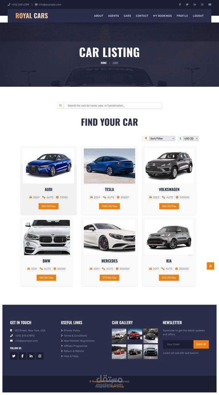 The project simulates a realistic online car rental experience — from browsing and booking vehicles to making payments and signing an electronic rental agreement upon confirmation.