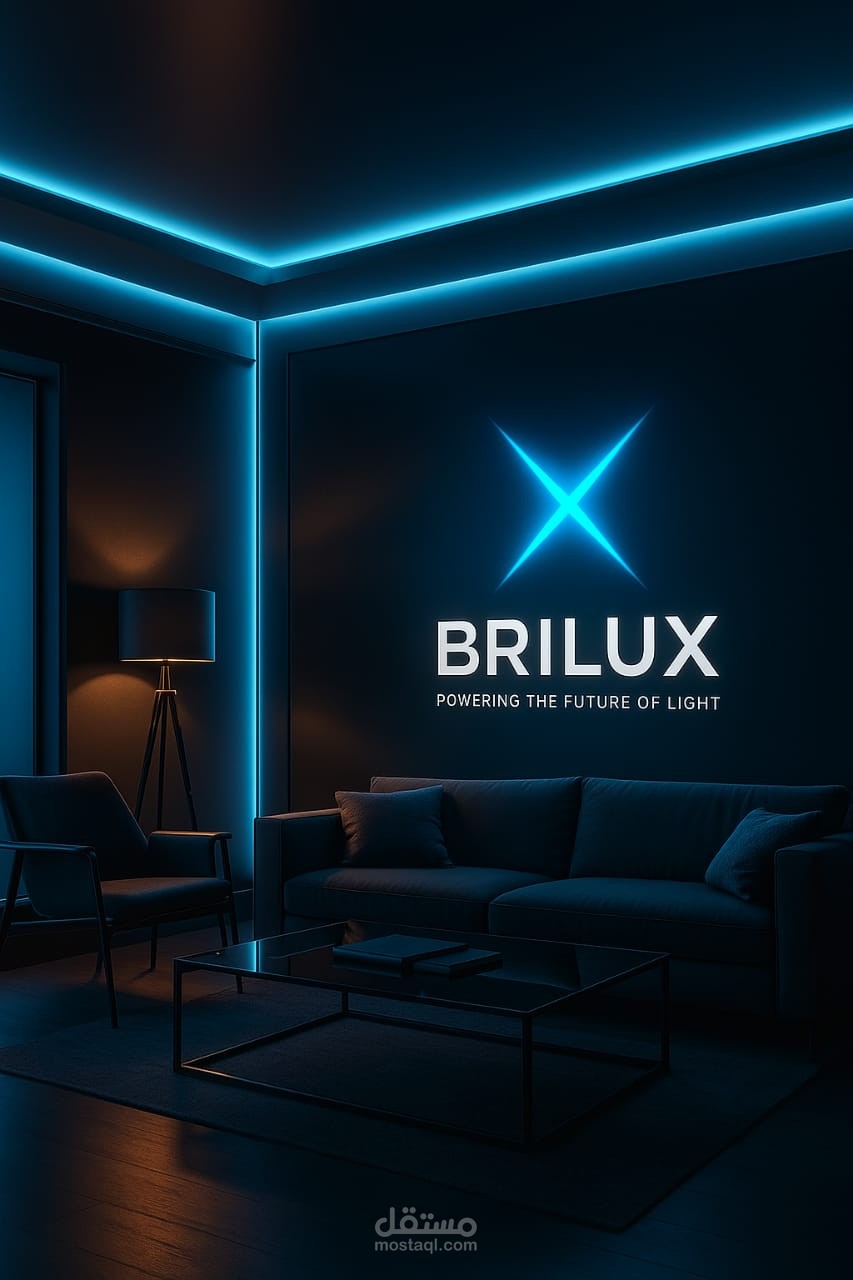 اللوجو بيوصل رسالة إن BRILUX مش مجرد شركة إضاءة، دي شركة بتقود مستقبل النور والتكنولوجيا.