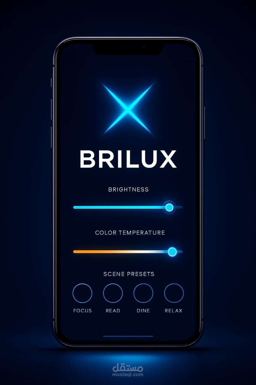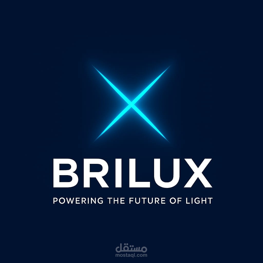 لوجو BRILUX بيعبر عن فكرة الإضاءة الذكية والمستقبلية بشكل بسيط وفخم.