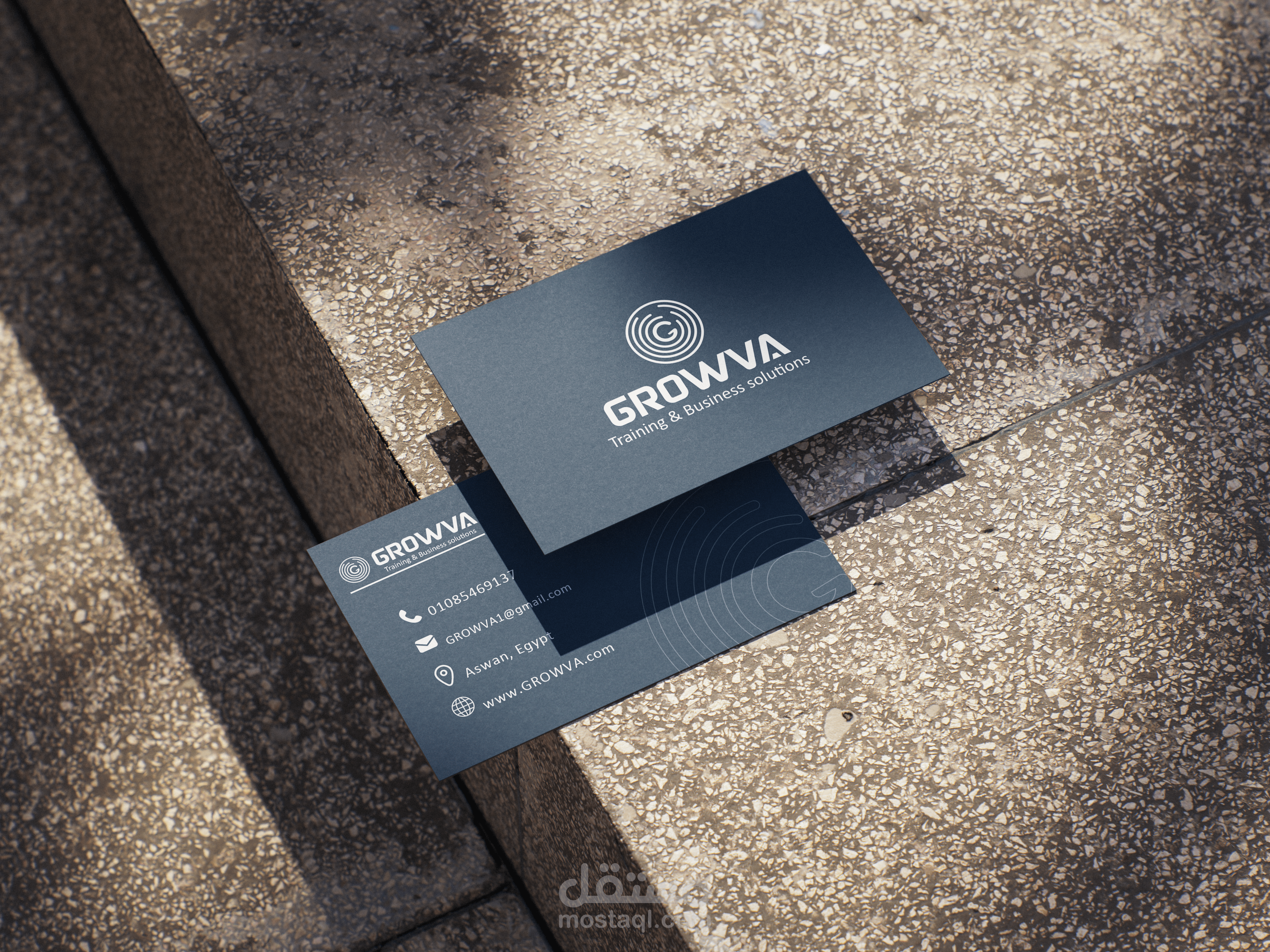 مشروع تطوير الهوية البصرية الكاملة لشركة GROWVA، وهي شركة متخصصة في تدريب الأعمال وتقديم الحلول المبتكرة للشركات الناشئة وأصحاب المشاريع.