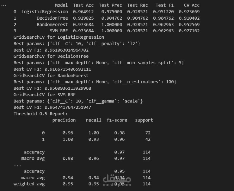 تم تنفيذ مشروع علمي متكامل يهدف إلى التنبؤ المبكر بسرطان الثدي اعتمادًا على بيانات طبية حقيقية من Breast Cancer Wisconsin Diagnostic Dataset.