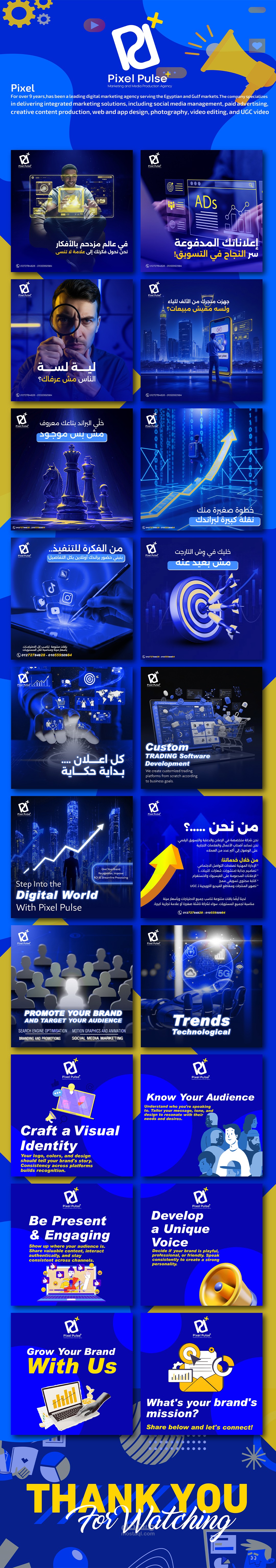 تصاميم سوشيال ميديا لشركة التسويق و الاعلانات المصريه ( Pixel pulse+ )