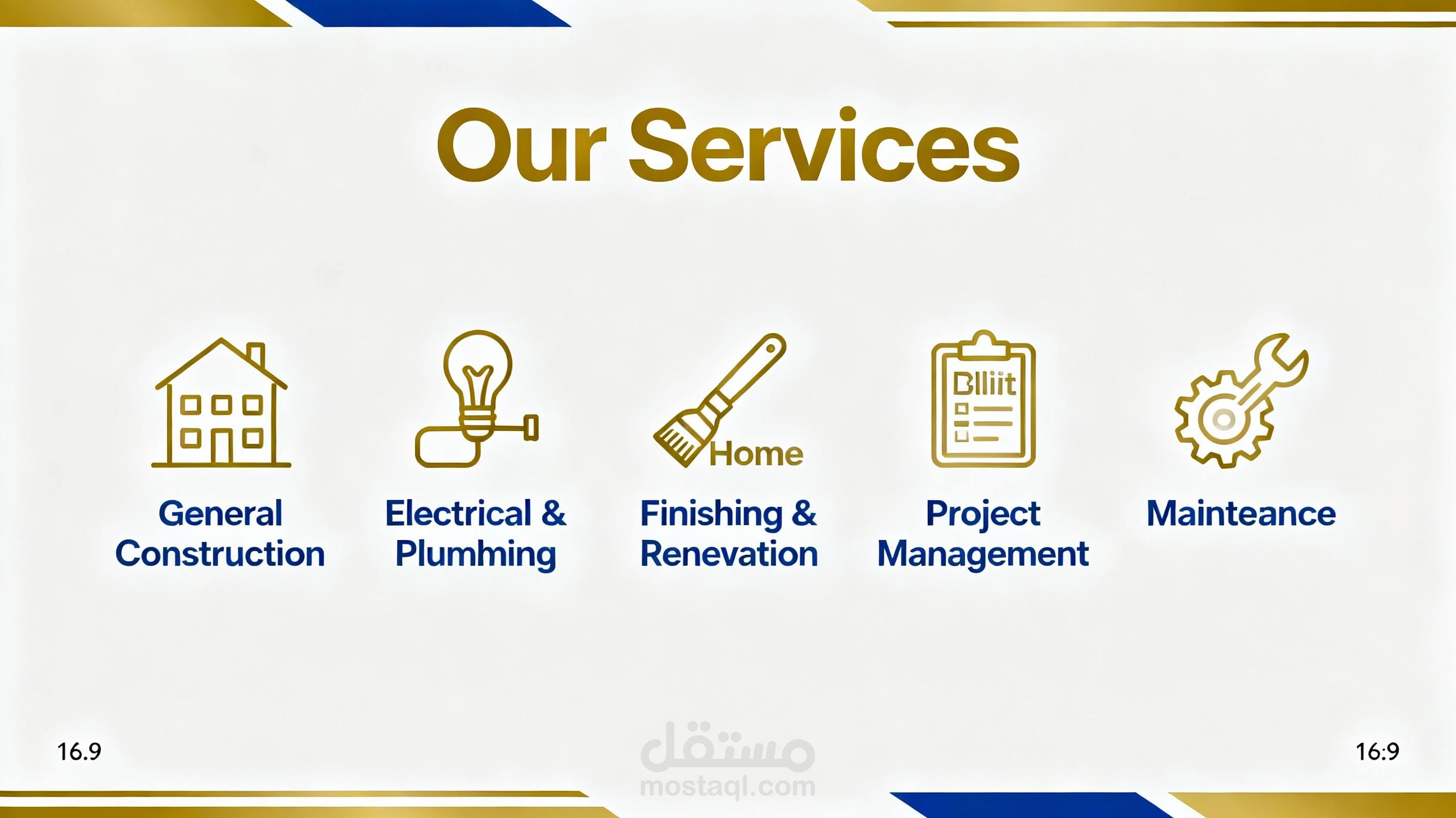 تنسيق بصري أنيق يعكس جودة الشركة واحترافيتها في قطاع المقاولات.