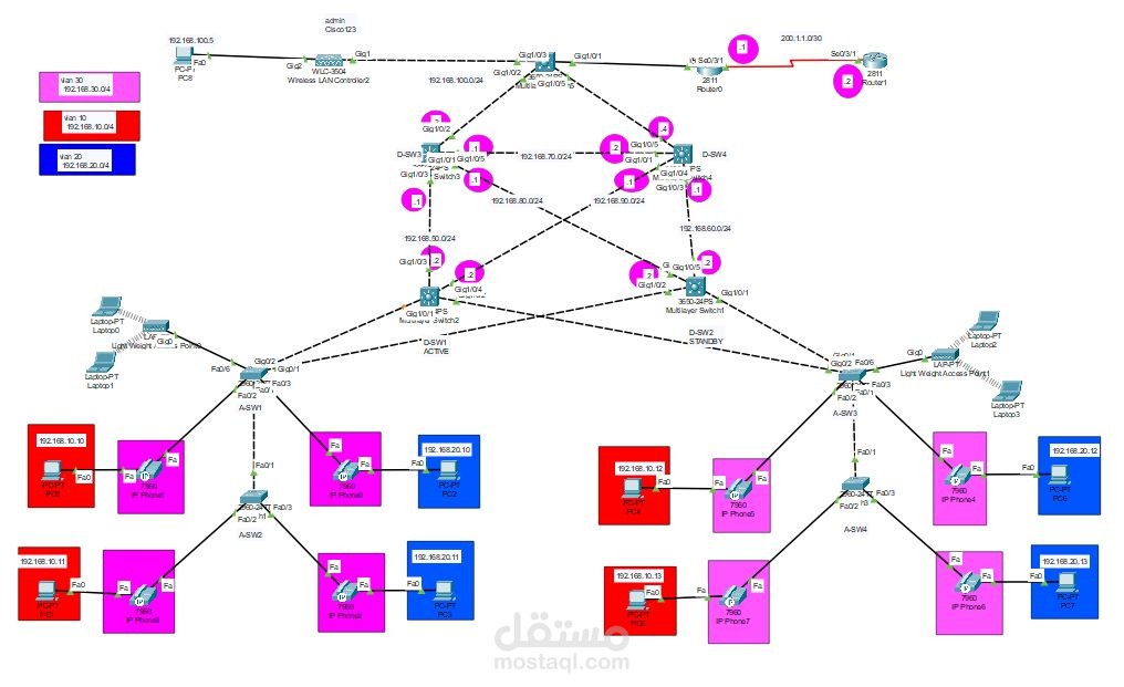 توزيع أدوار الشبكة (Data Center, Core, Distribution, Access Layers) طبقًا لمعايير الشركات الكبرى