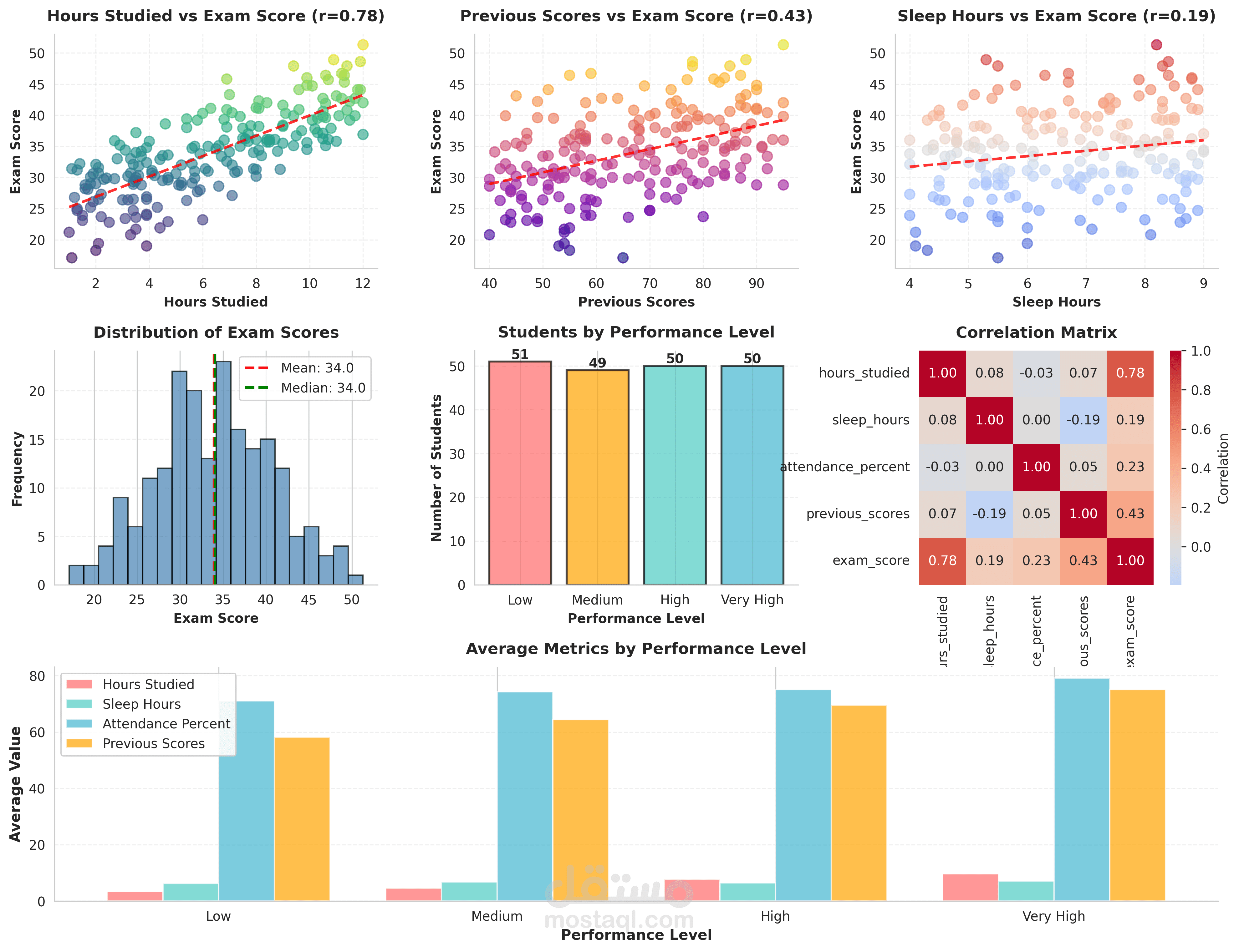 Student Exame Scores - Previous scores - Hours of Studying - Students Sleeping hours - Students Attendance