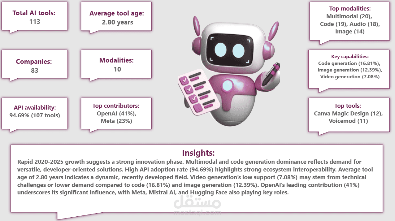 سيطرة الأدوات متعددة الوسائط وأدوات توليد الأكواد تؤكد الطلب المتزايد على الحلول الشاملة والموجهة للمطورين.