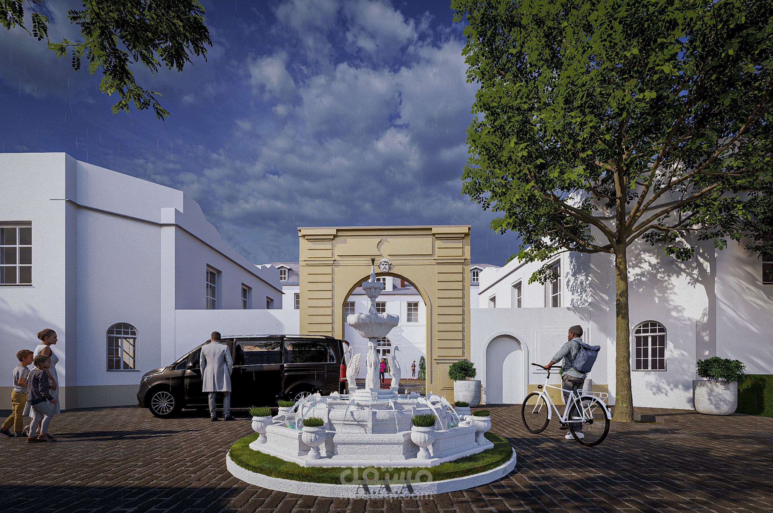 يتضمّن المشروع أيضًا تمثيل السياق العمراني المحيط، بما في ذلك الأشجار المماثلة لتلك الموجودة فعليًا في الموقع والموزّعة في أماكنها الحقيقية، إضافةً إلى تهيئة الفضاءات الخارجية.